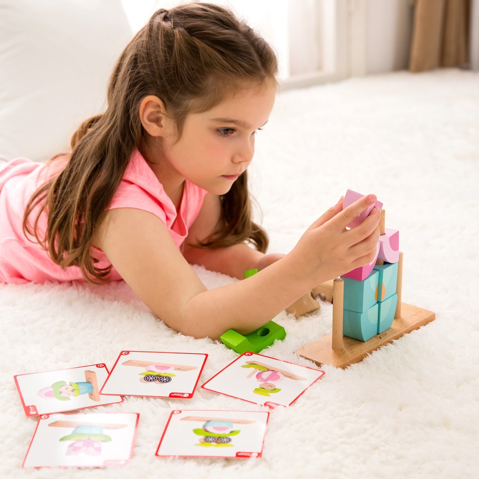 Ще однією важливою особливістю цієї пірамідки - пазла є наявність 5 двосторонніх карток із завданнями (загалом 10 завдань), за допомогою яких малюк познайомиться з цією іграшкою.