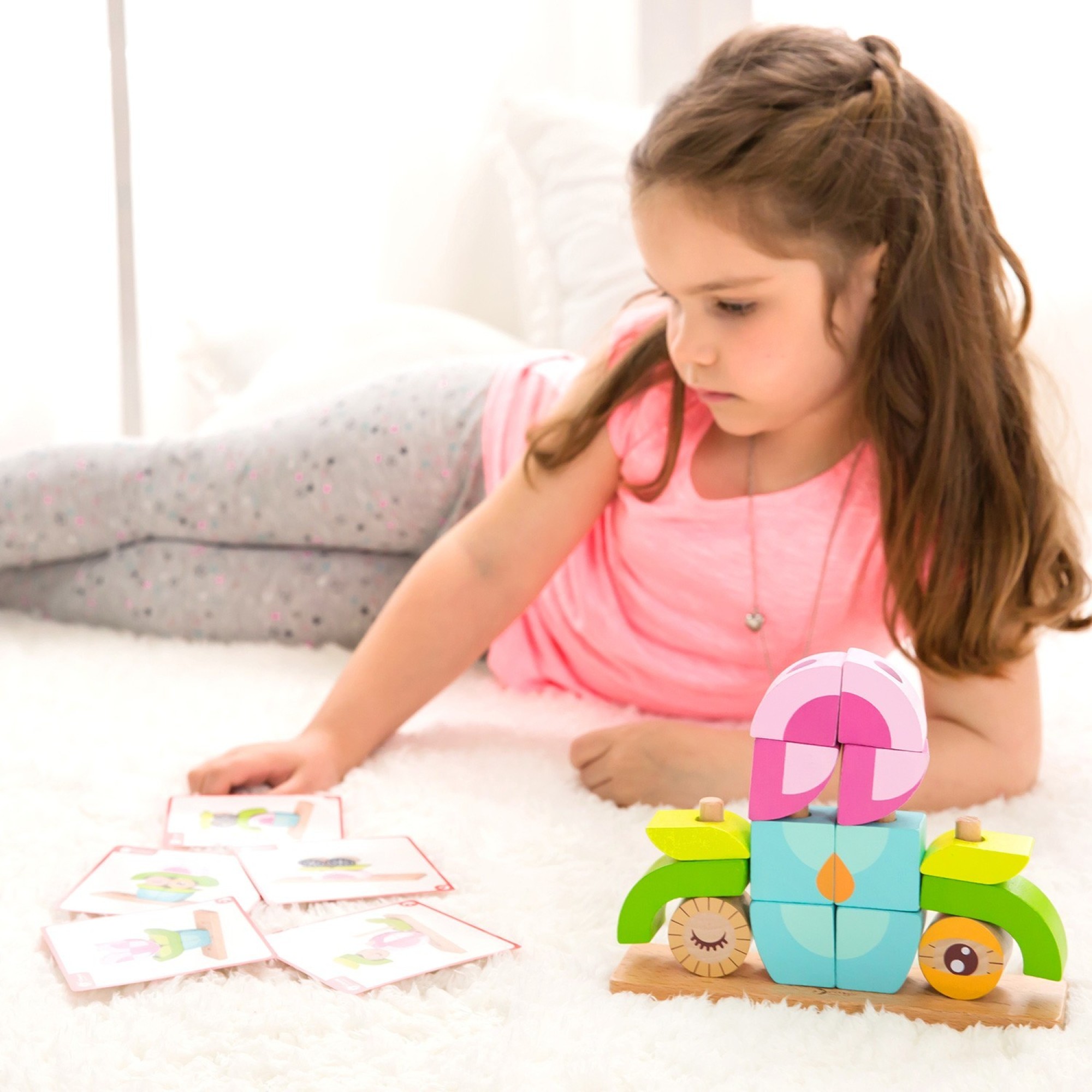 Яскраві кольорові блоки дозволять збудувати чарівних звірів, будиночки та машинки.
