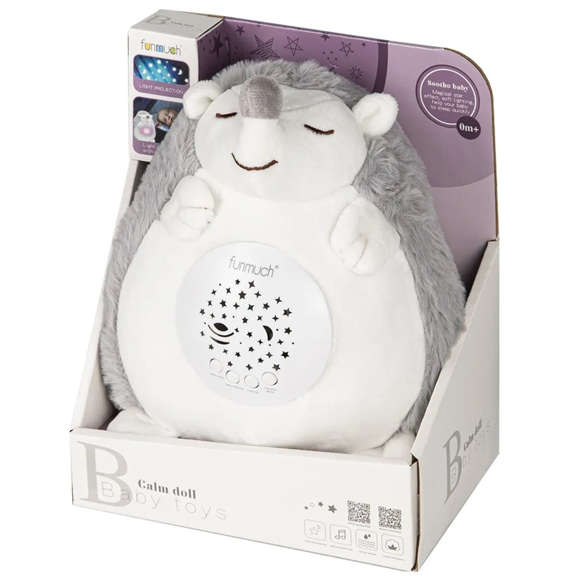 М'який нічник у вигляді їжачка Funmuch стане незамінною і найулюбленішою іграшкою в кімнаті Вашої дитини! Чарівна проекція зоряного неба в поєднанні з розслаблюючими мелодіями і дуже миловидним плюшевим їжачком створять максимально комфортні умови для безтурботного відпочинку малюка.
