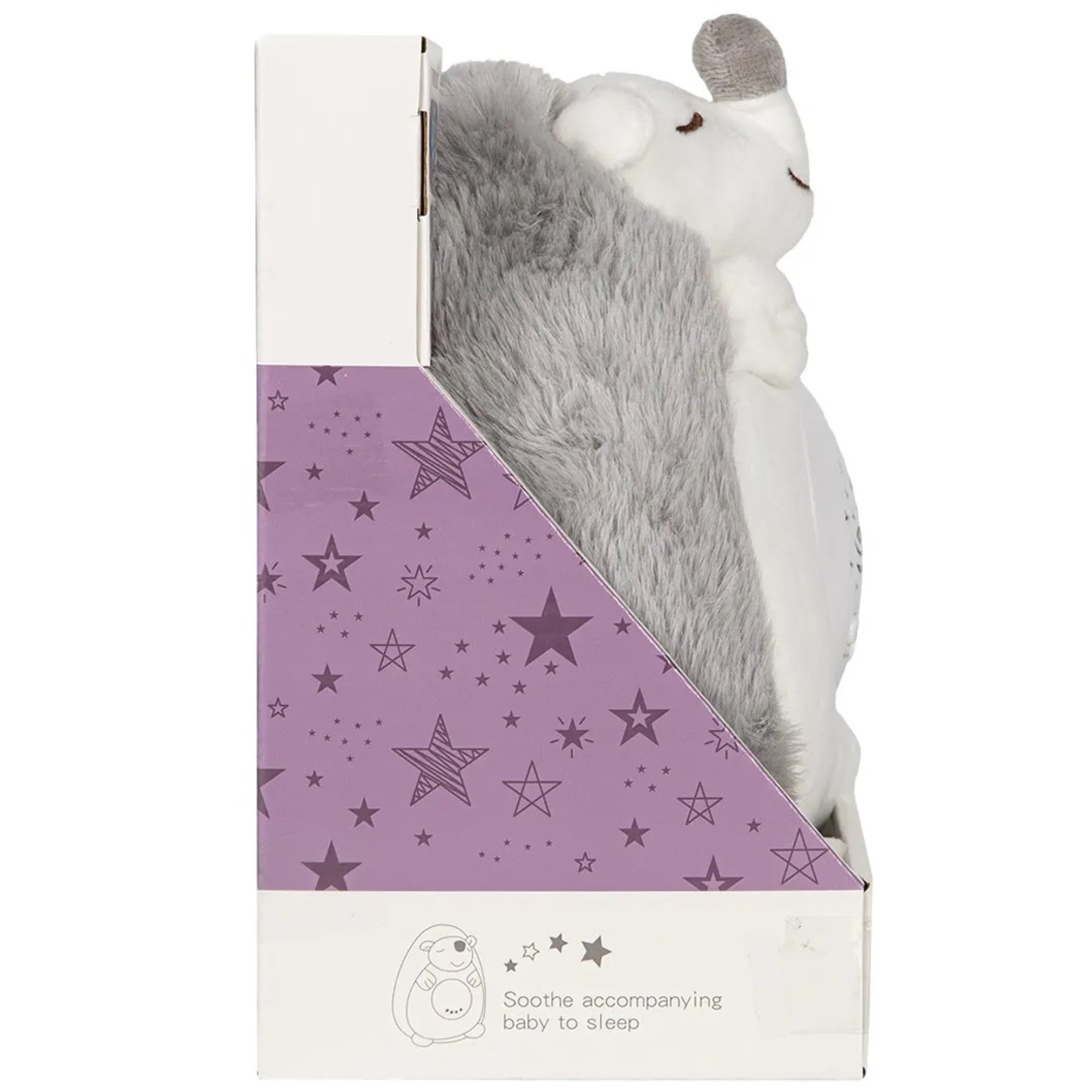 Плюшевий нічник виконаний у вигляді м'якої іграшки. Білосніжний їжачок з пухнастими сірими голочками знаходиться в дуже мирному сплячому стані, а на мордочці присутня легка усмішка. Звірятко виконане з дуже ніжного, м'якого плюшу та наповнене гіпоалергенним синтепоновим наповнювачем.