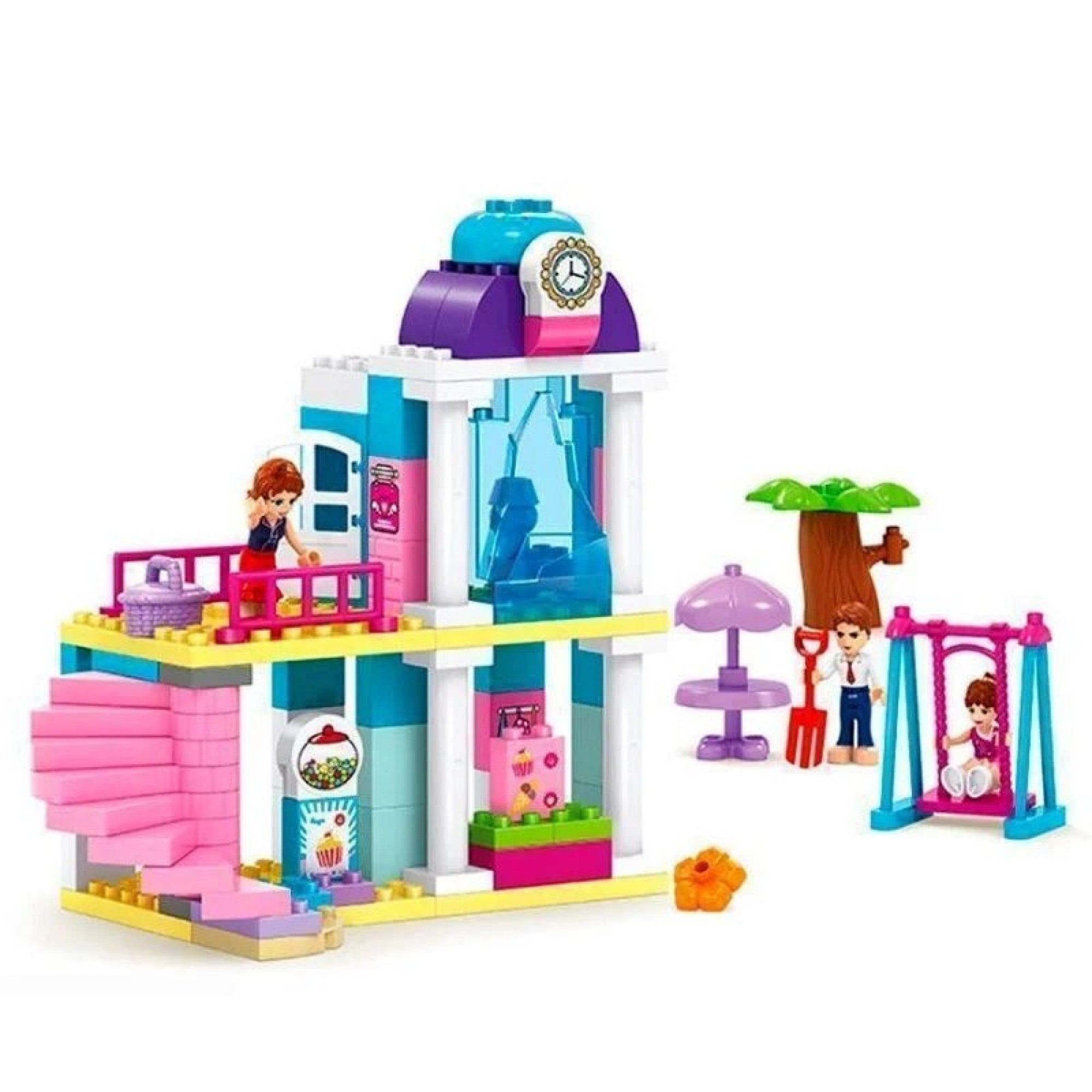 Ребёнок увлекательно проведет время, собирая двухэтажный дом и жителей. Фигурки маленьких куколок и машинки позволяют в дальнейшем играть с собранным конструктором.
