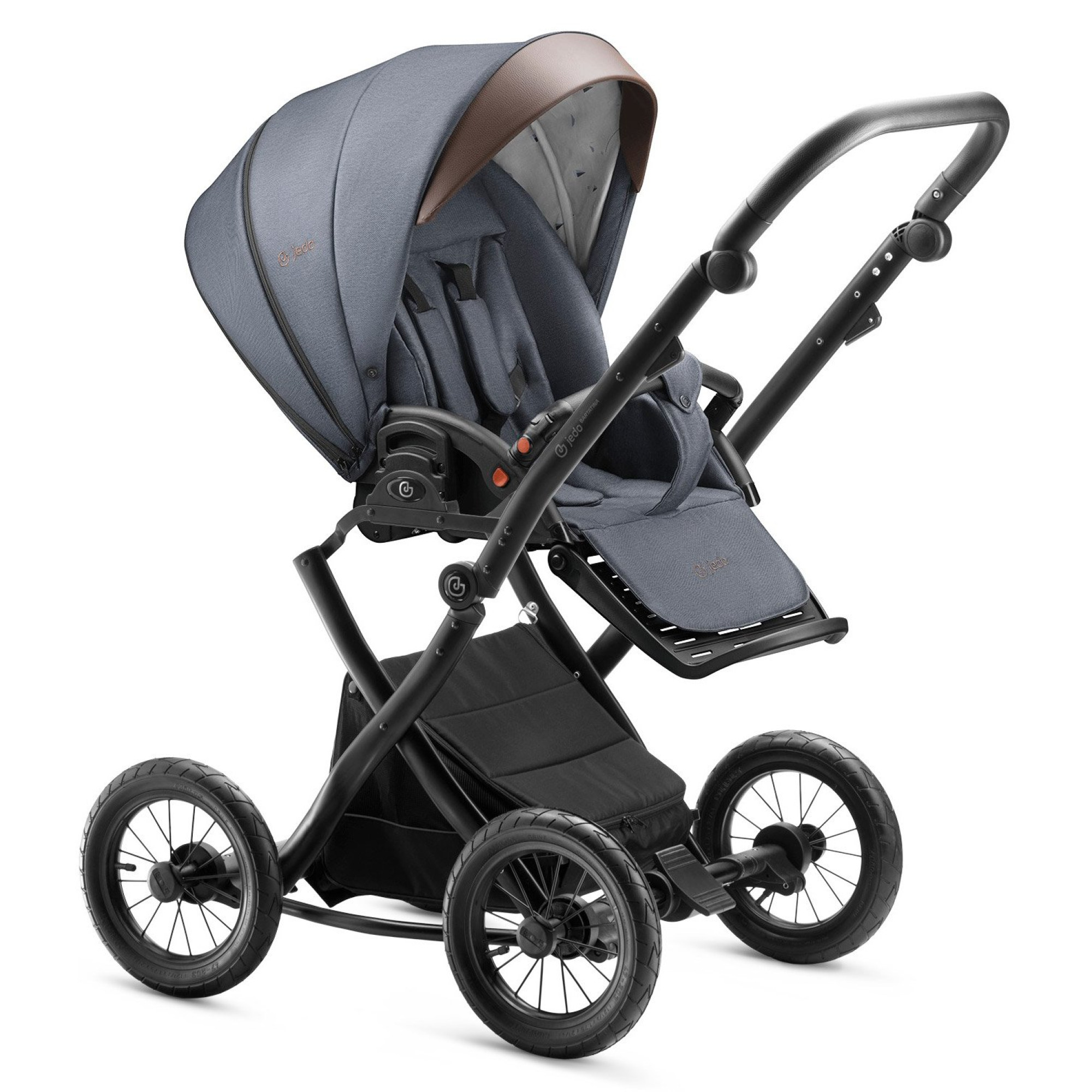 Алюмінієва рама оснащена надувними колесами і м'якою підвіскою, має регульовану ручку, обтягнуту еко-шкірою і місткий кошик для речей на блискавці.