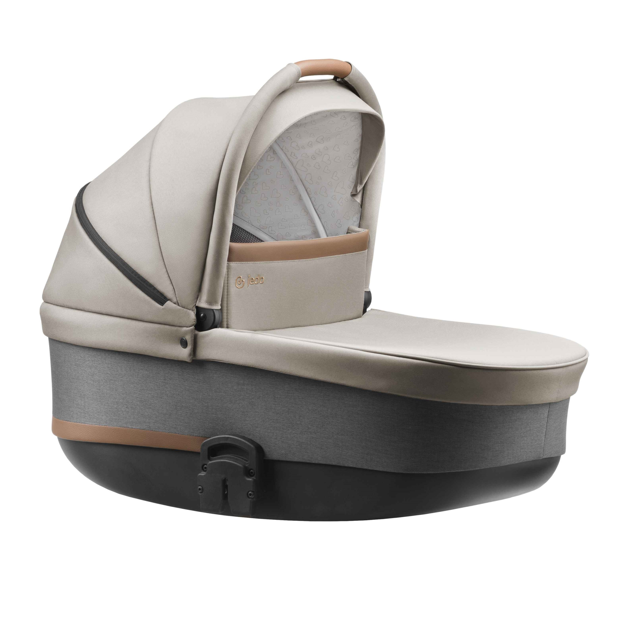 Люлька має пластикове дно з регульованою вентиляцією. Оснащена зручною ручкою, обтягнутою еко-шкірою, вентиляційним віконцем в капюшоні і регулюванням висоти спинки.