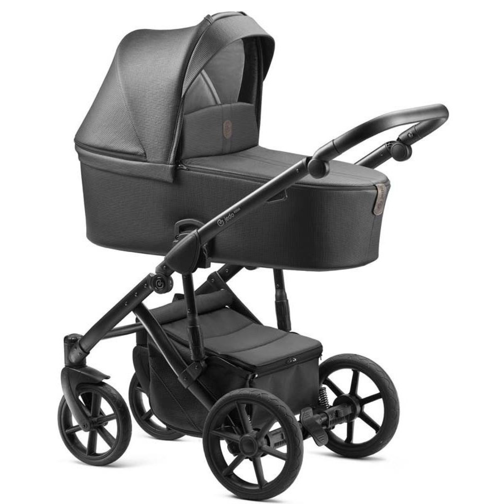 Функціоналом та комплектацією Jedo Koda передбачено все для зручності та комфорту батьків та дитини. Подвійна система амортизації на шасі з регулюванням жорсткості для плавної їзди нерівними дорогами. У люльці передбачена регульована спинка та вентиляційні отвори.