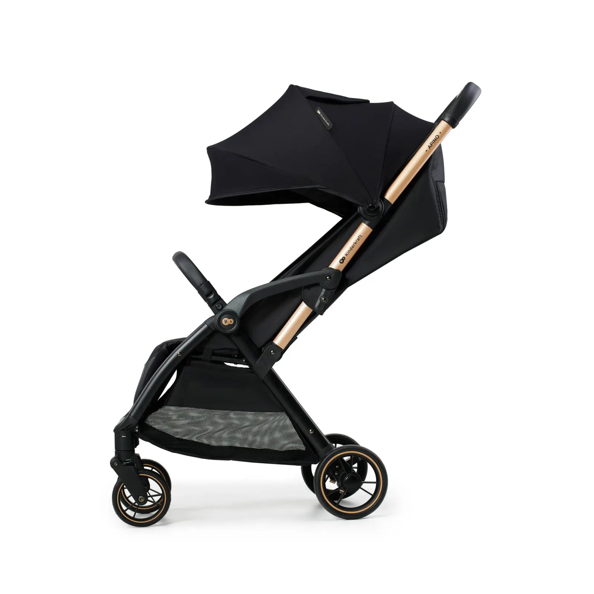 Kinderkraft Apino - легка (7,5 кг), компактна коляска з автоматичним складанням одним рухом. Особливості включають регульовану спинку до горизонтального положення, регульовану підніжку, великий капюшон з вентиляційною панеллю та віконцем.