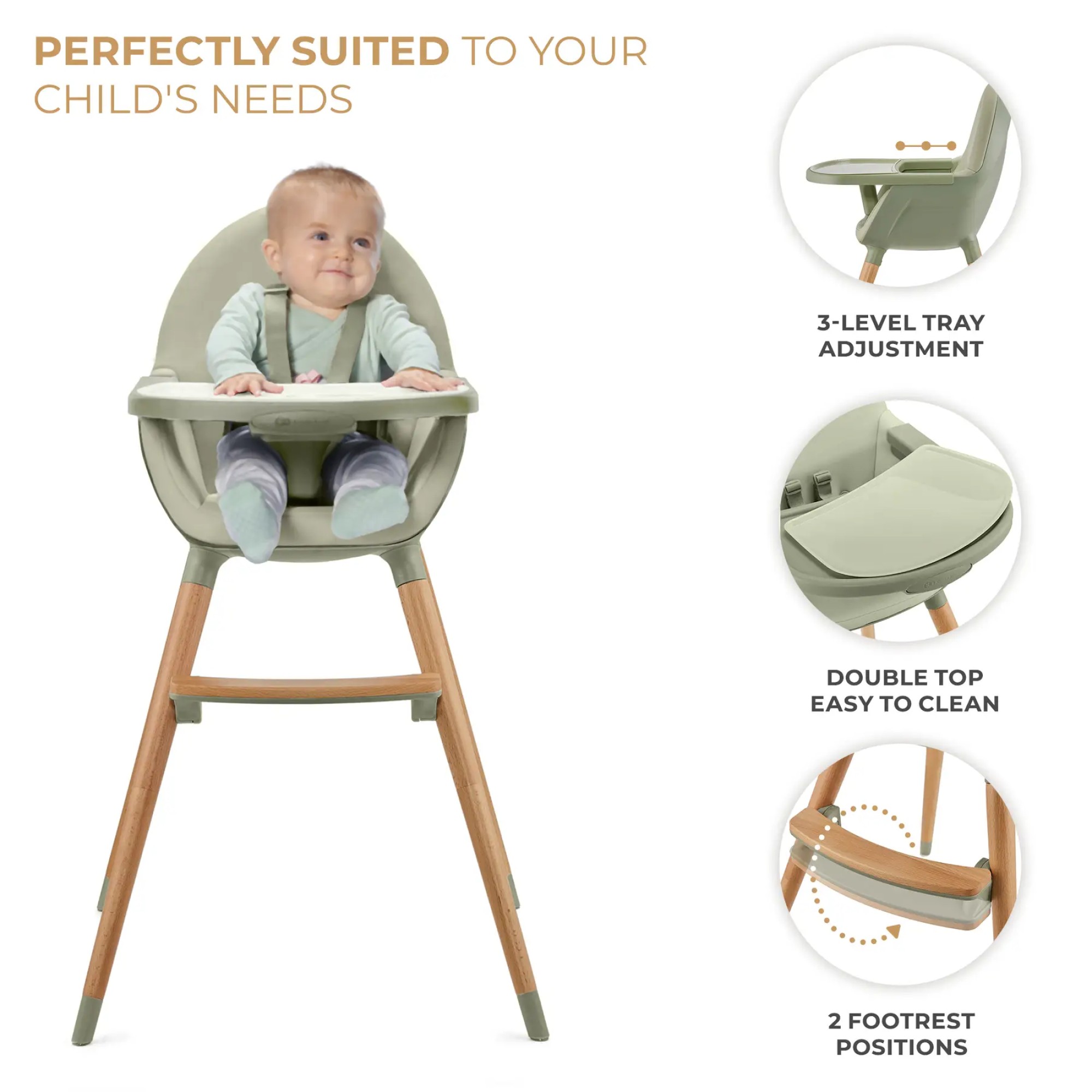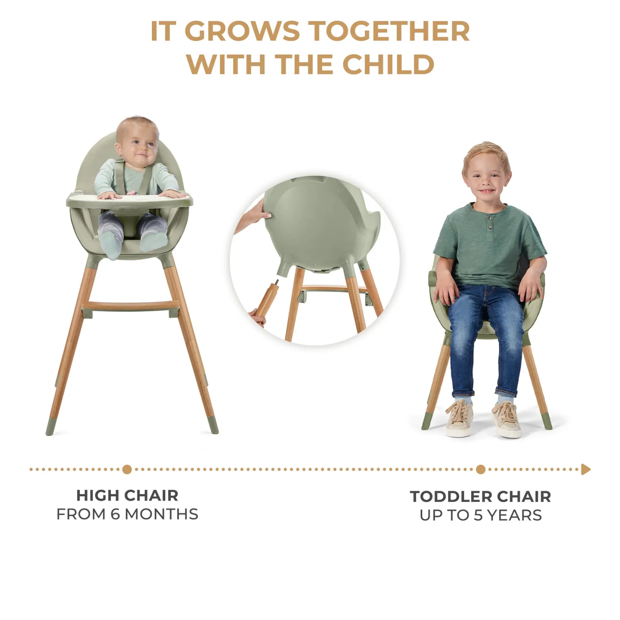 Стільчик буде супроводжувати вашу дитину з перших прийомів їжі та завдяки можливості перетворення в стілець для старшої дитини, залишиться з вами надовго. Він ідеально підходить для навчання самостійному харчуванню завдяки регульованому, знімному підносу з легкою для миття верхньою частиною. Стільчик також оснащений п'ятиточковим ременем безпеки, нековзними ніжками та практичною підставкою для ніг, яку можна регулювати за висотою дитини.