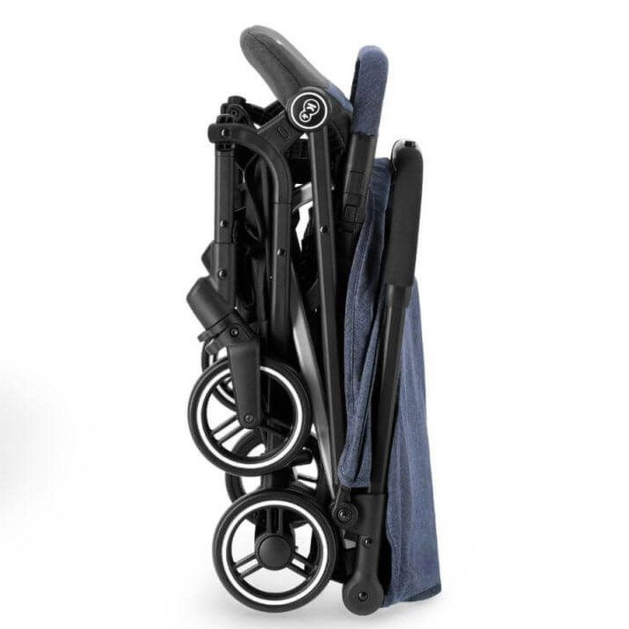Складна рама Рама з полегшеного алюмінієвого сплаву, компактно складається по типу "книжки". Натисніть на кнопку по центру ручки, щоб скласти коляску.