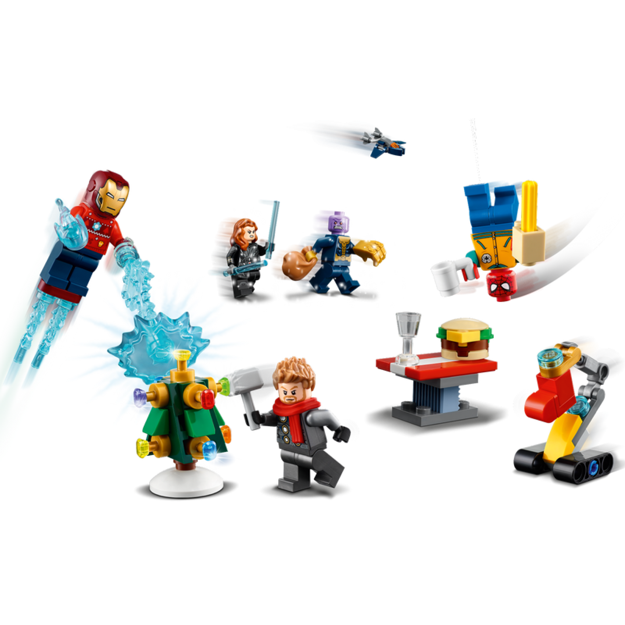 У наборі є мініфігурки - Залізна людина, Людина-павук, Чорна вдова, Тор, Капітан Марвел, Танос і Нік Фьюрі - плюс захоплюючі предмети та дивовижні аксесуари із всесвіту Marvel, які сподобаються дітям.