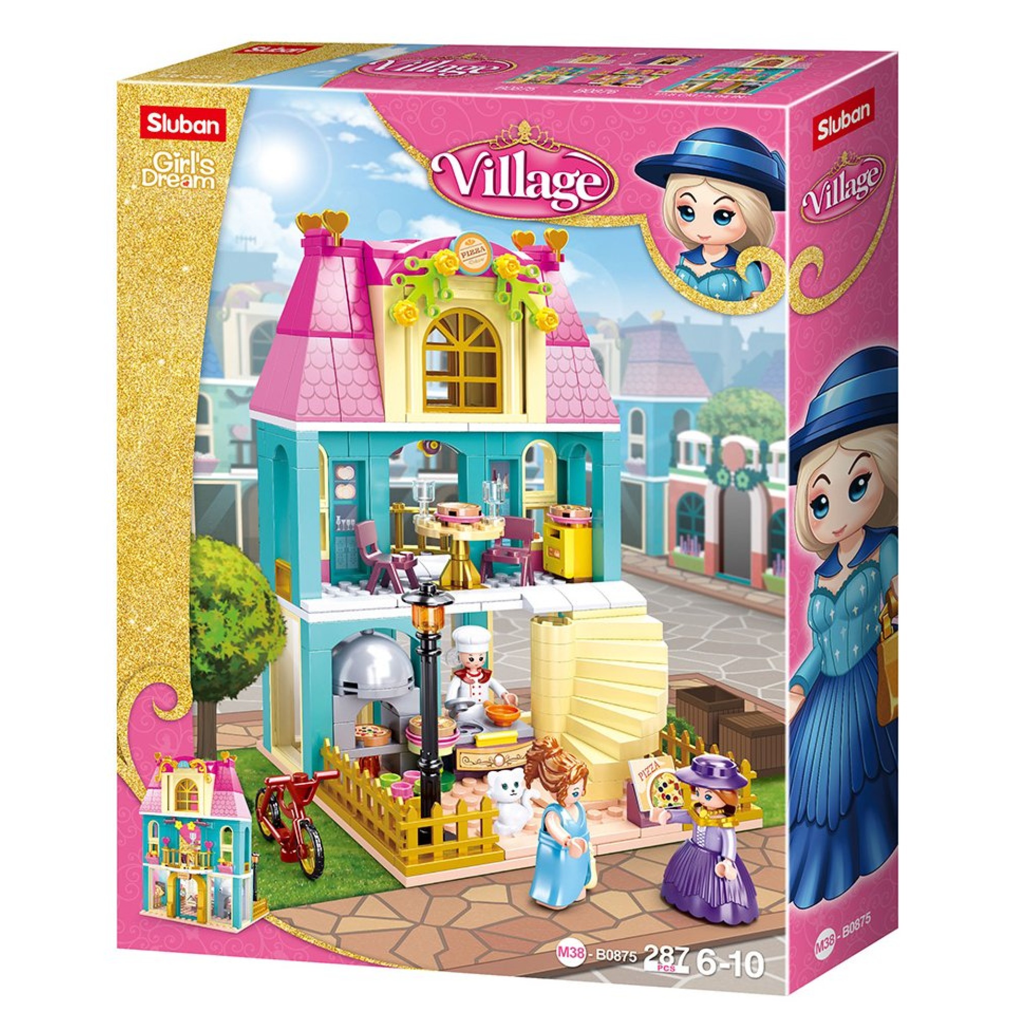 Конструктор Sluban кафе-пиццерия, мебель, фигурка, 287 деталей (M38-B0875)