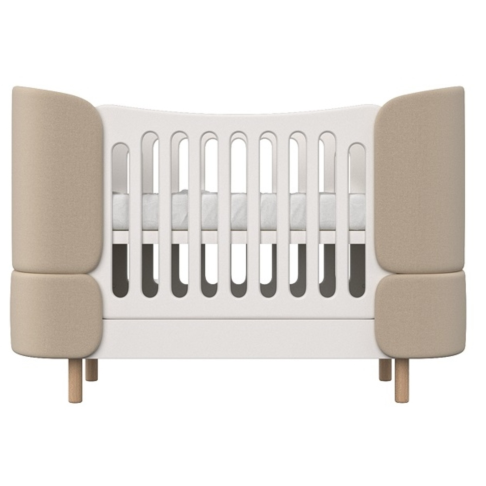 Ліжечко-трансформер Мама вколихала Soft з м'якими текстильними спинками має збільшений розмір спального місця, що дозволяє використовувати ліжечко навіть в базовій комплектації до 4 років.