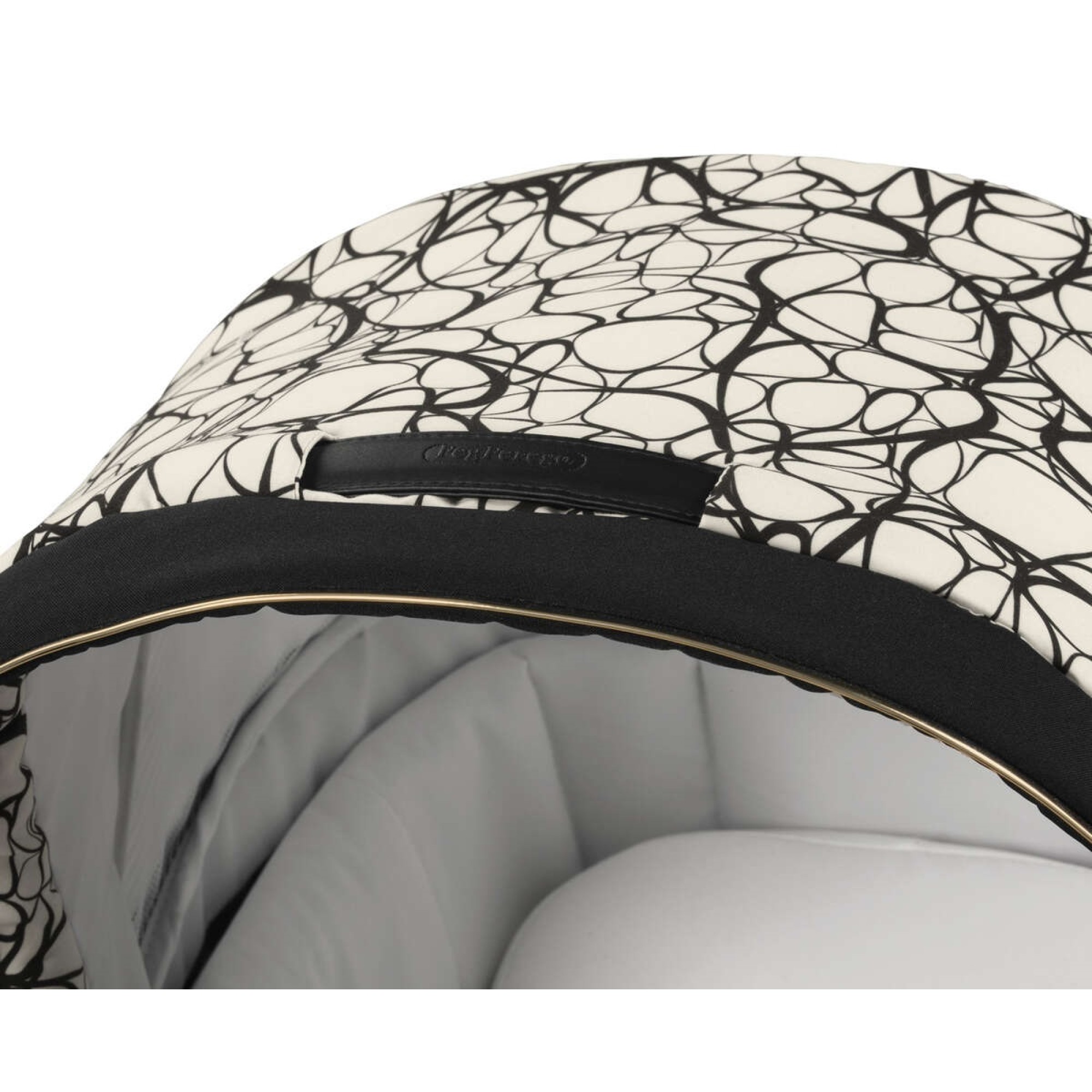 Елегантна ручка для перенесення з еко-шкіри є патентом Peg Perego. Капюшон можна опустити однією рукою, навіть якщо ви тримаєте дитину на руках.