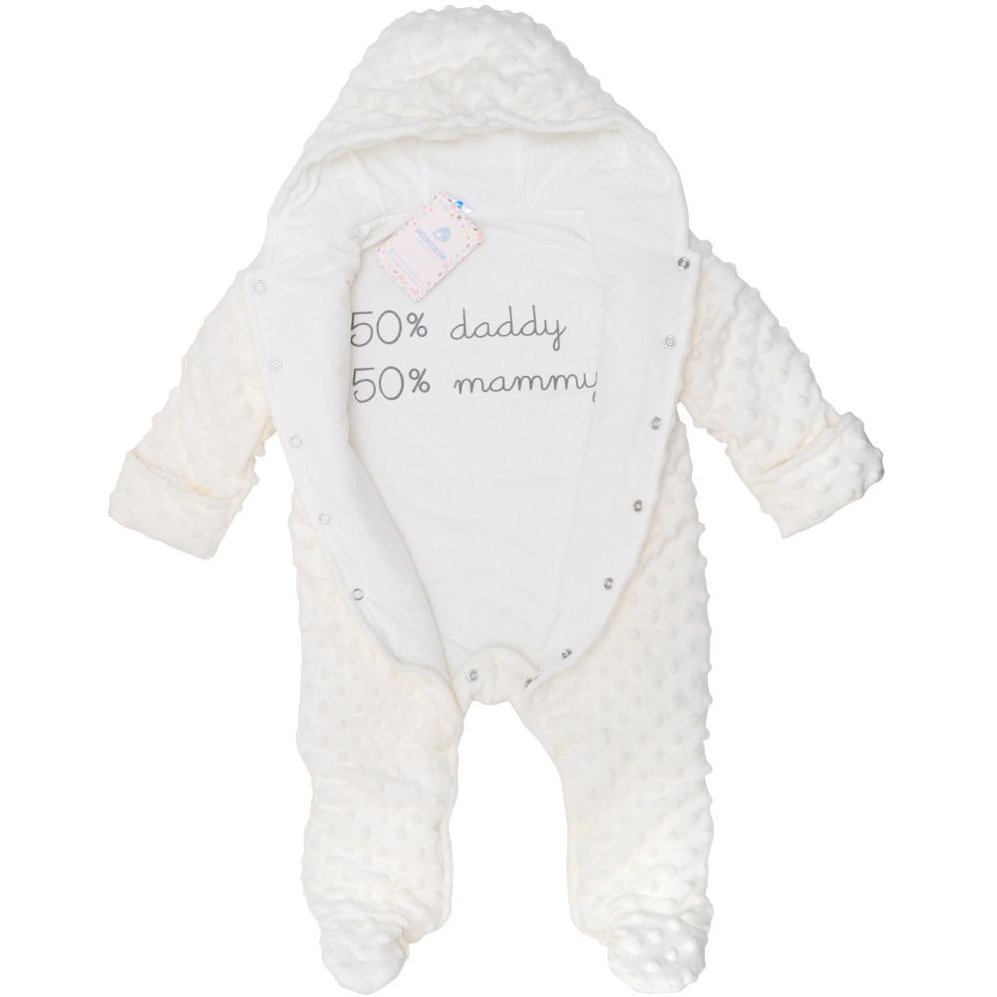 Комбінезон Minikin (Мінікін) відмінно підходить для прогулянок восени та взимку. Візерунок на комбінезоні – пухирці, на внутрішній підкладці є великий друк з написом I'm a little princess. Під час друку на тканині використовувалися безфталатні фарби, які не викликають алергію у малюків.