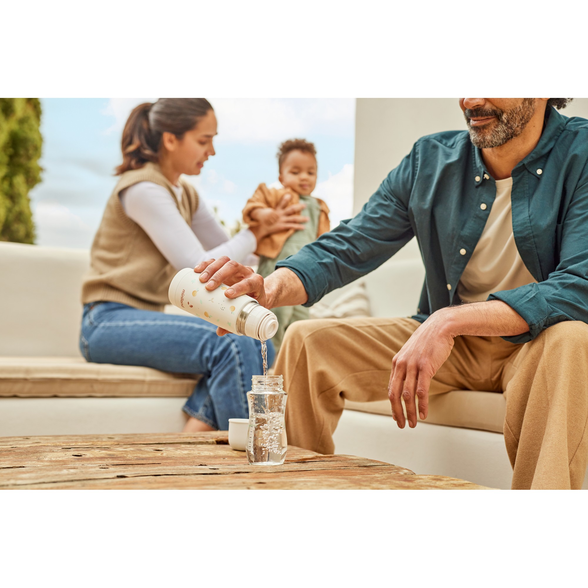 Завдяки цьому він підтримує температуру як холодних, так і гарячих напоїв понад 24 години. Кришку термоса можна використовувати як чашку, а антикапельний клапан забезпечує велику безпеку та гігієну при транспортуванні рідин завдяки системі «клацання». Термос легко мити. Для зручності використання, можна придбати додаткову термосумку, що підходить до цього термосу.