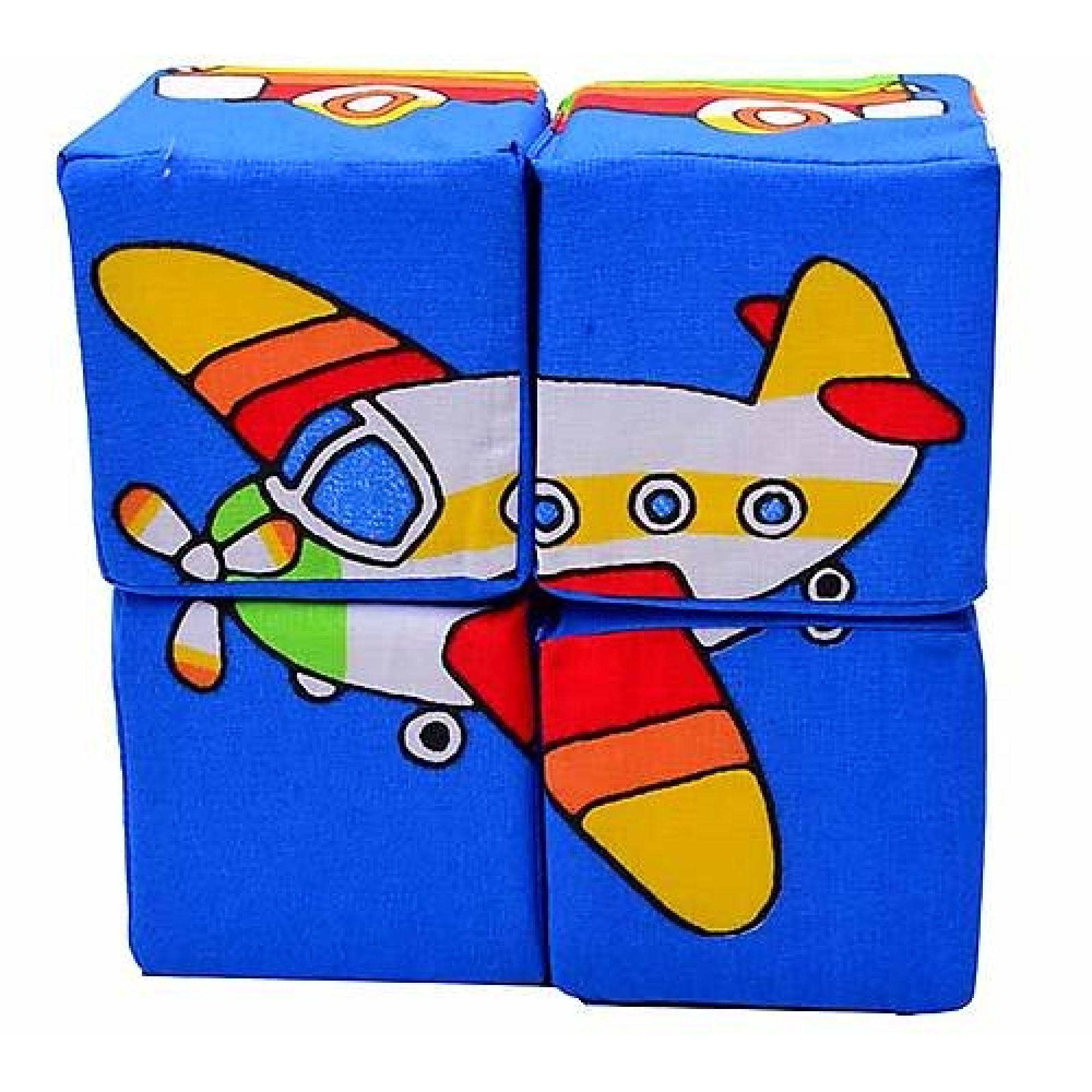 Зроблені такі кубики з якісного текстилю, їх можна прати. Дитина зможе легко утримувати кубик, кидати, кусати, стискати, будувати пірамідки та будиночки. На тканині кожного кубика нанесені частини техніки, які складаються як пазл в ціле зображення.