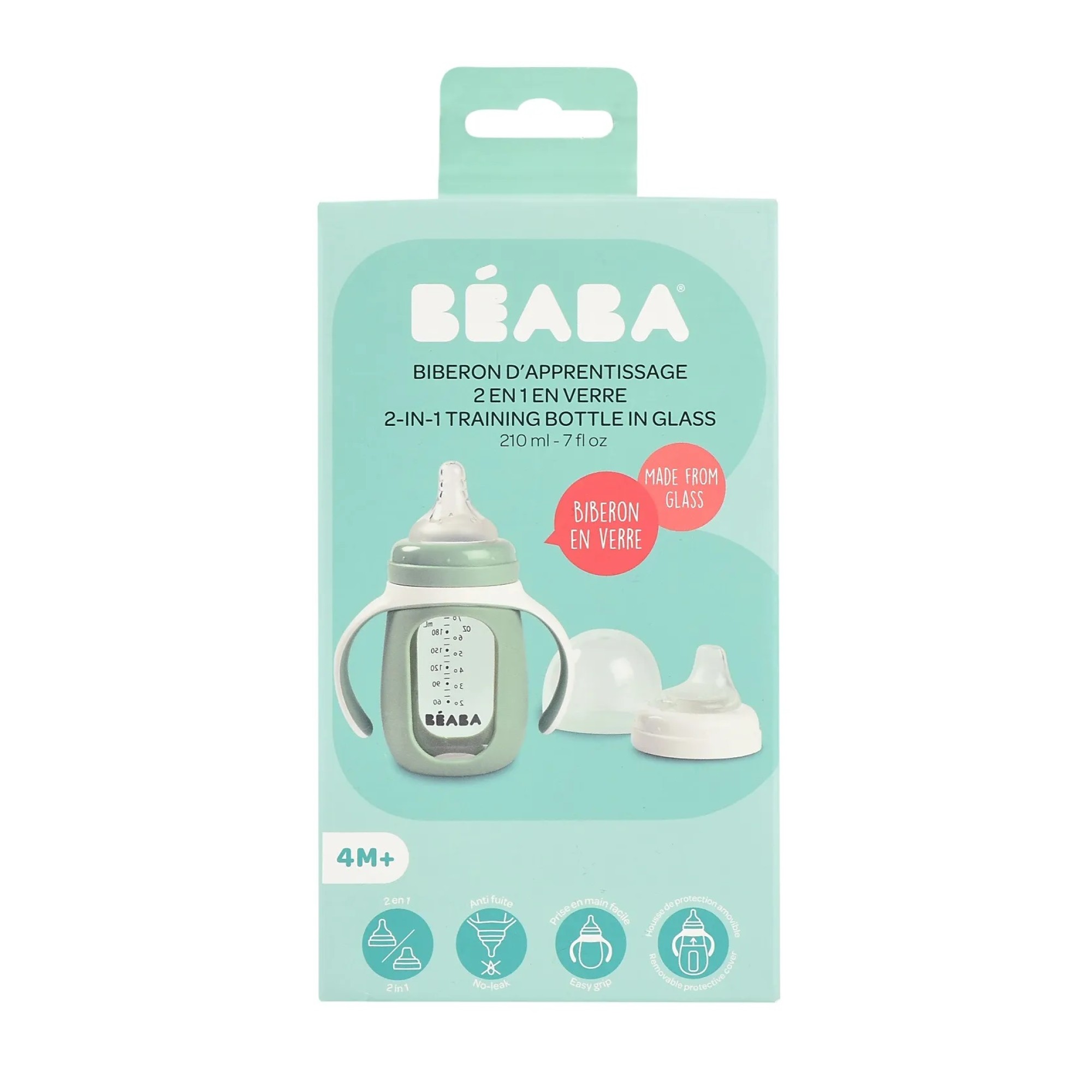 Поїльник скляний Beaba 2 в 1 210 мл зелений (913537)