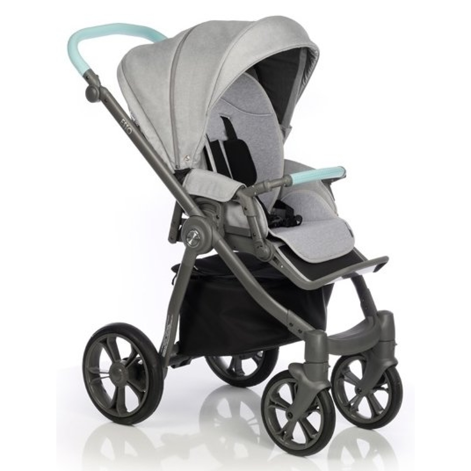 Рама з алюмінію складається по типу книжки однією рукою за механізмом Easy Fold. Щоб скласти раму, потрібно потягнути за спеціальний ремінь, а це зробити з однією вільною рукою. Амортизація на низькопрофільних колесах сприяє дуже м'якій їзді бездоріжжям. Передня вісь блокується ергономічним ножним гальмом. На передній осі вільно обертаються обидва колеса на 360 градусів, дозволяючи долати будь-які перешкоди на дорозі. Передні поворотні з жорстким фіксатором, а задні ставляться на гальмо. Багажний кошик має доступ у верхній частині та збоку. При цьому передні колеса меншого розміру є поворотними і забезпечують колясці чудову маневреність - ви легко зможете розвернути коляску навіть у найвужчому місці!