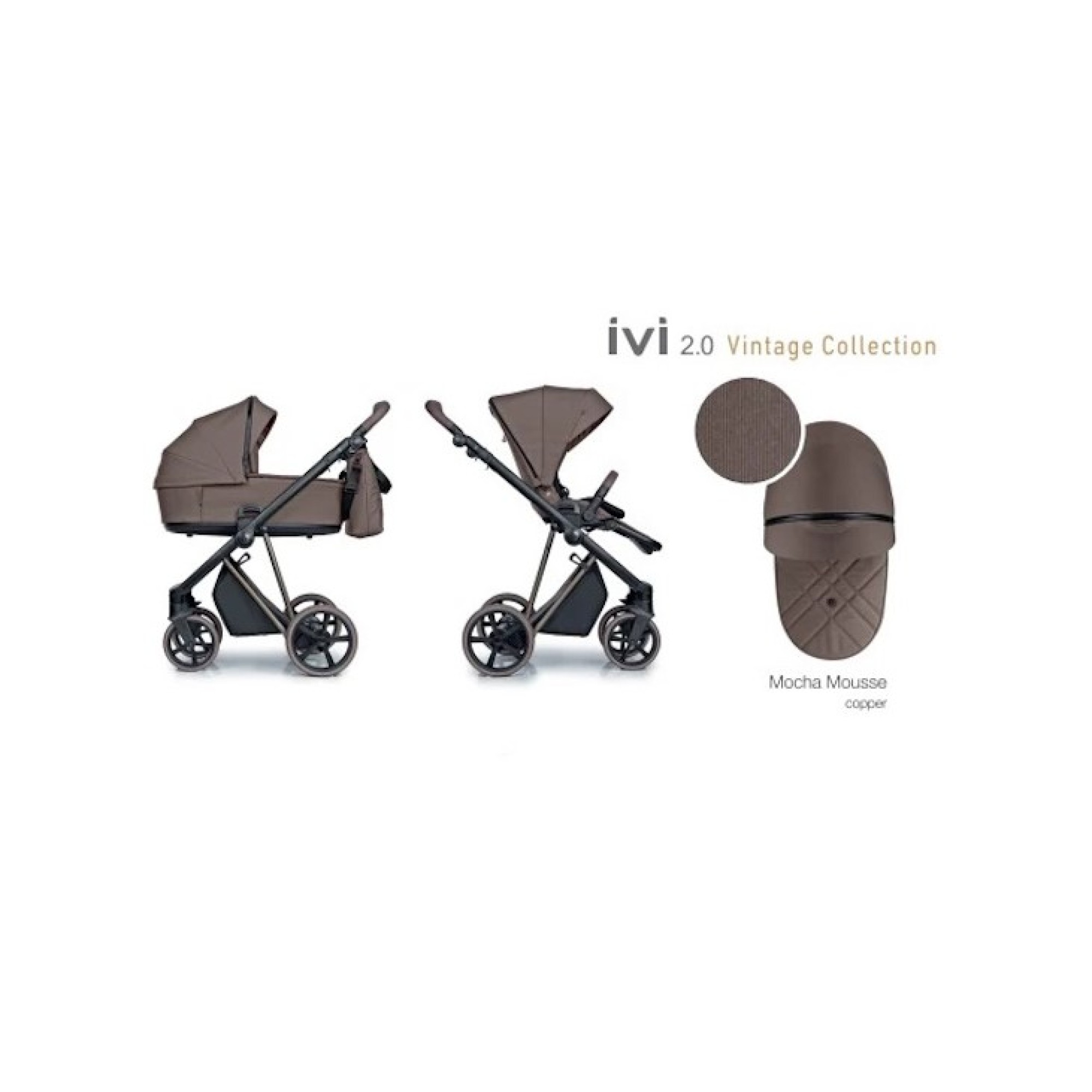 дитяча коляска 2в1, візок преміум Vintage Collection, матрац Air Zone 3D, м'яка амортизація, сонцезахисний козирок у комплекті • Mocha Mousse Vintage (R-IVC-MM)