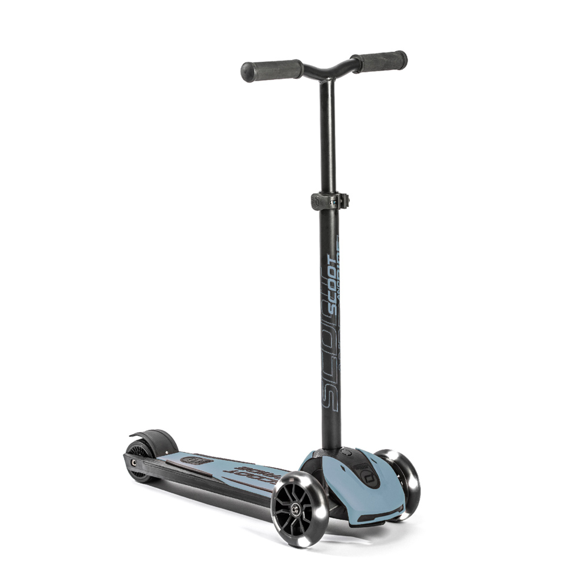 ScootandRide Highwaykick 5 LED – ідеальний супутник для дітей від 5 років та підлітків, який росте разом із юним райдером завдяки регульованій висоті керма (до 90 см). Головною особливістю моделі Highwaykick 5 є LED–колеса, які не лише надають самокату стильного футуристичного вигляду, а й забезпечують чудову видимість і безпеку в темний час доби.