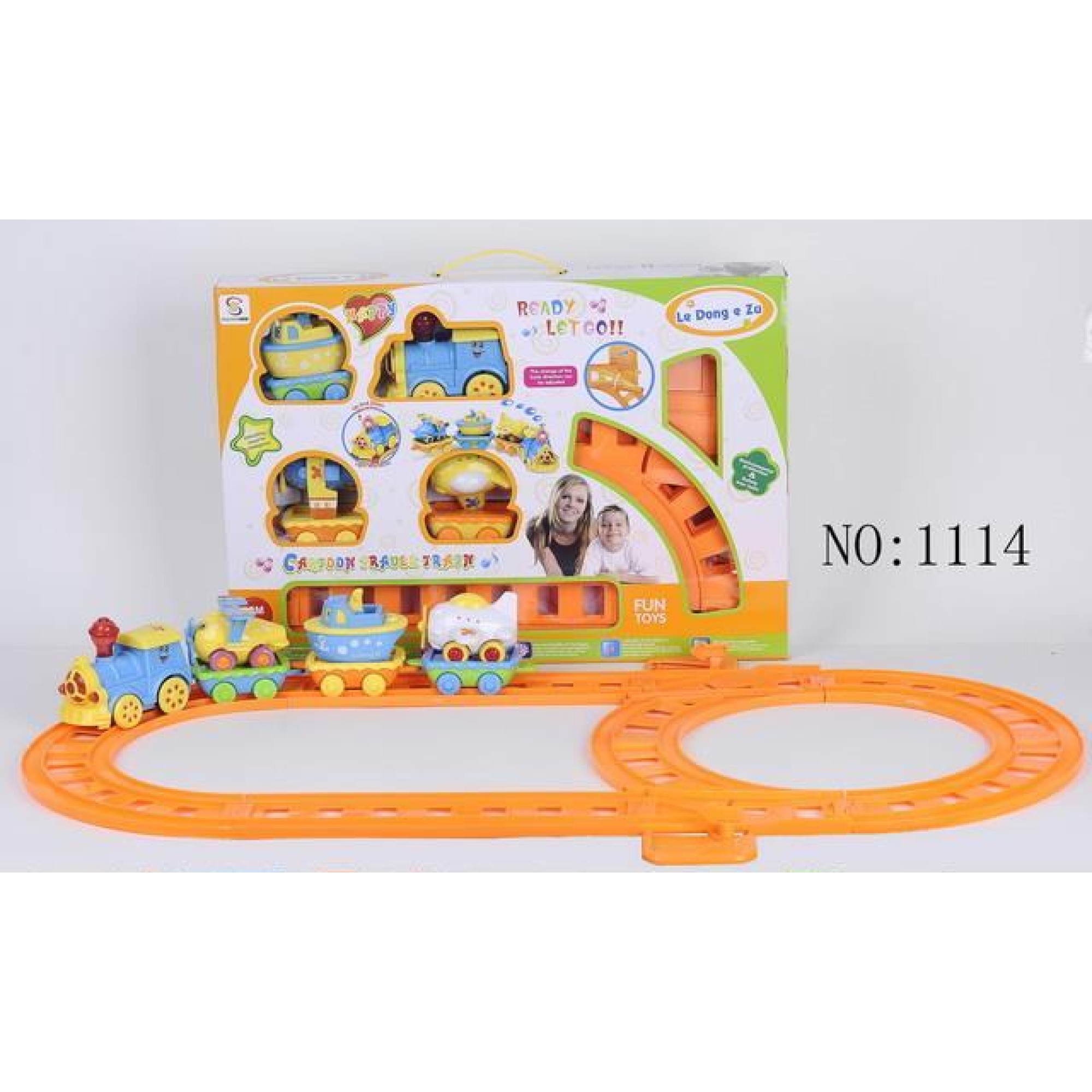 Залізниця Sheng Chuan (1114) – працює на батарейках. Головний паровоз везе за собою 3 вантажні ваноги на хторотих знаходяться літачки та кораблик. Яскраві кольори, весела музика дуже захоплює дитину.