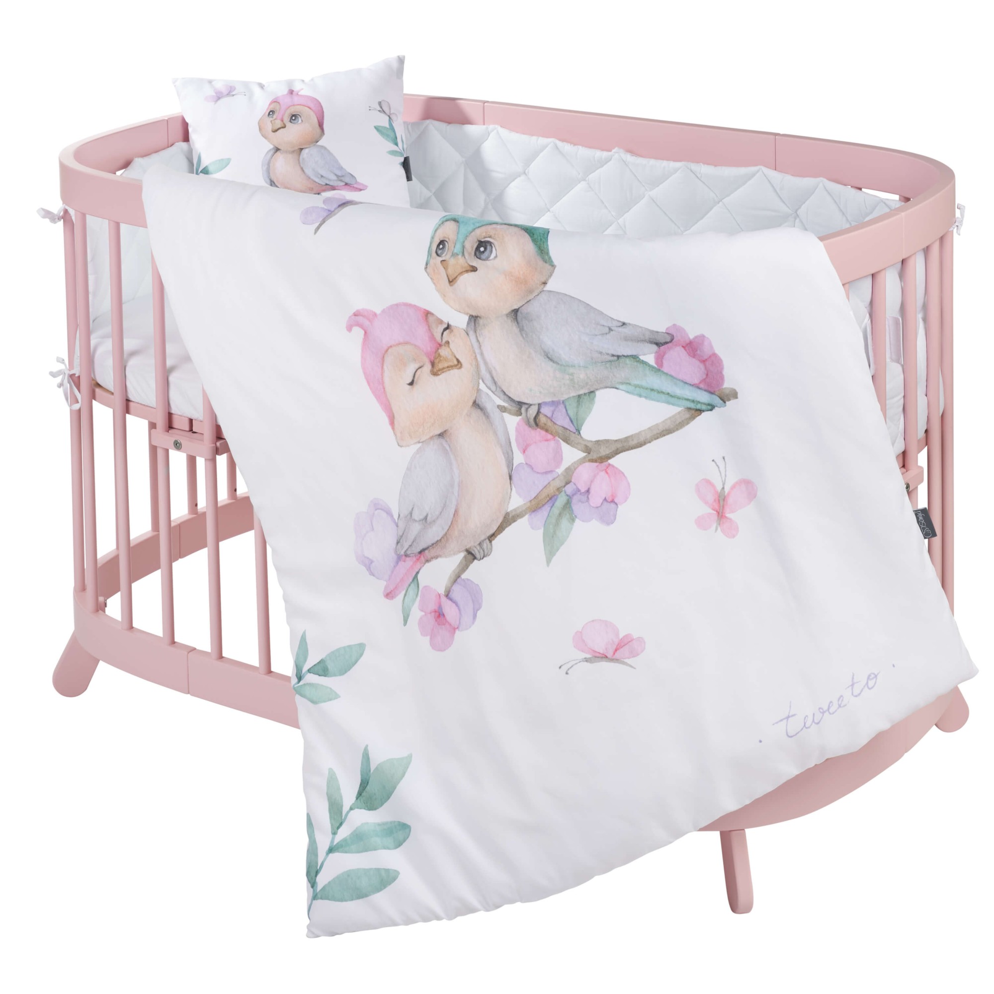 Змінний набір дитячої постільної білизни "Sweet birds" радуватиме вашого малюка та подарує йому приємні спогади на довгі роки. Ексклюзивні дизайнерські малюнки з пташками розробили спеціально на замовлення tweeto.