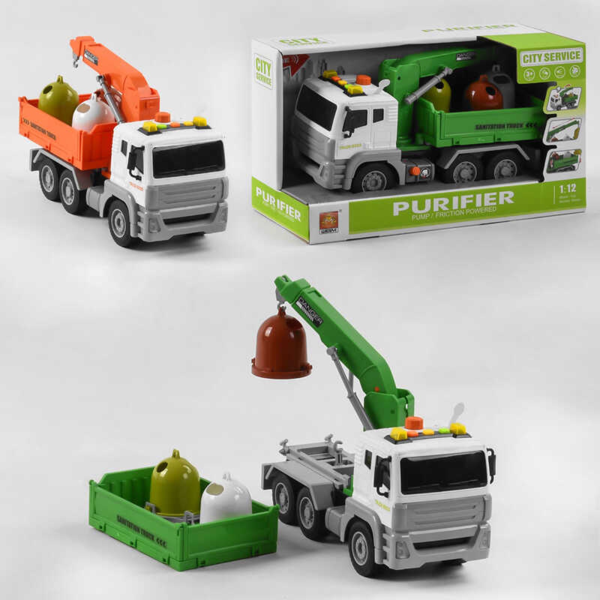Спецтехніка WY 822 A / WY 822 B (18) "Автокран", 2 кольори, на батарейках, інерція, помповий насос, висувна стріла, світло, звук, в коробці