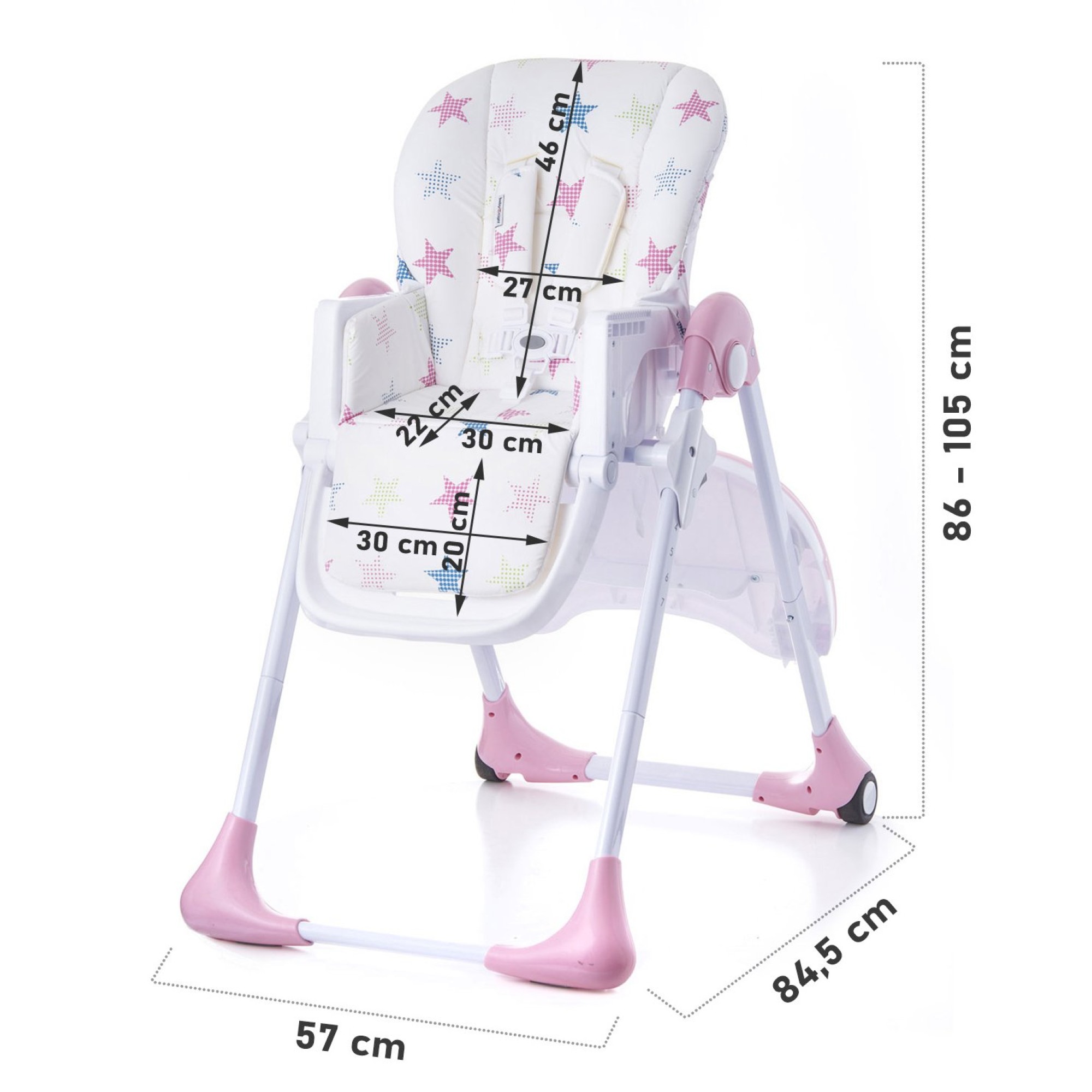 Система регулювання висоти сидіння і нахилу спинки дозволяє відрегулювати їх відповідно до потреб і зростанням вашої дитини. Зручність і мобільність забезпечується швидким і легким складанням, а вбудовані колеса дозволяють легко транспортувати стільчик.