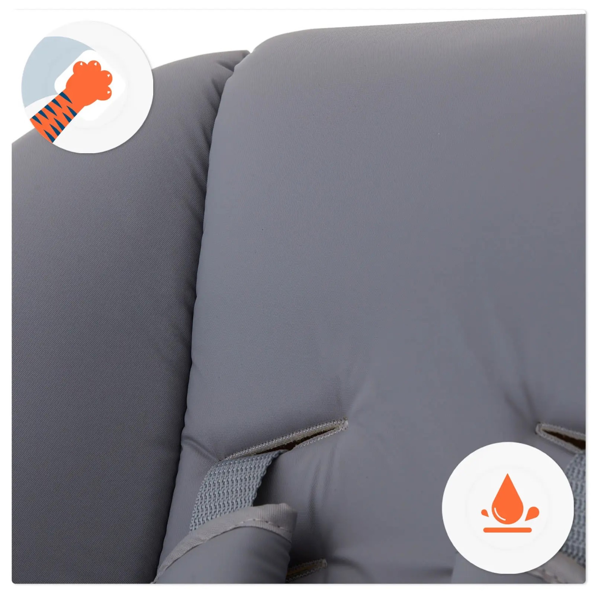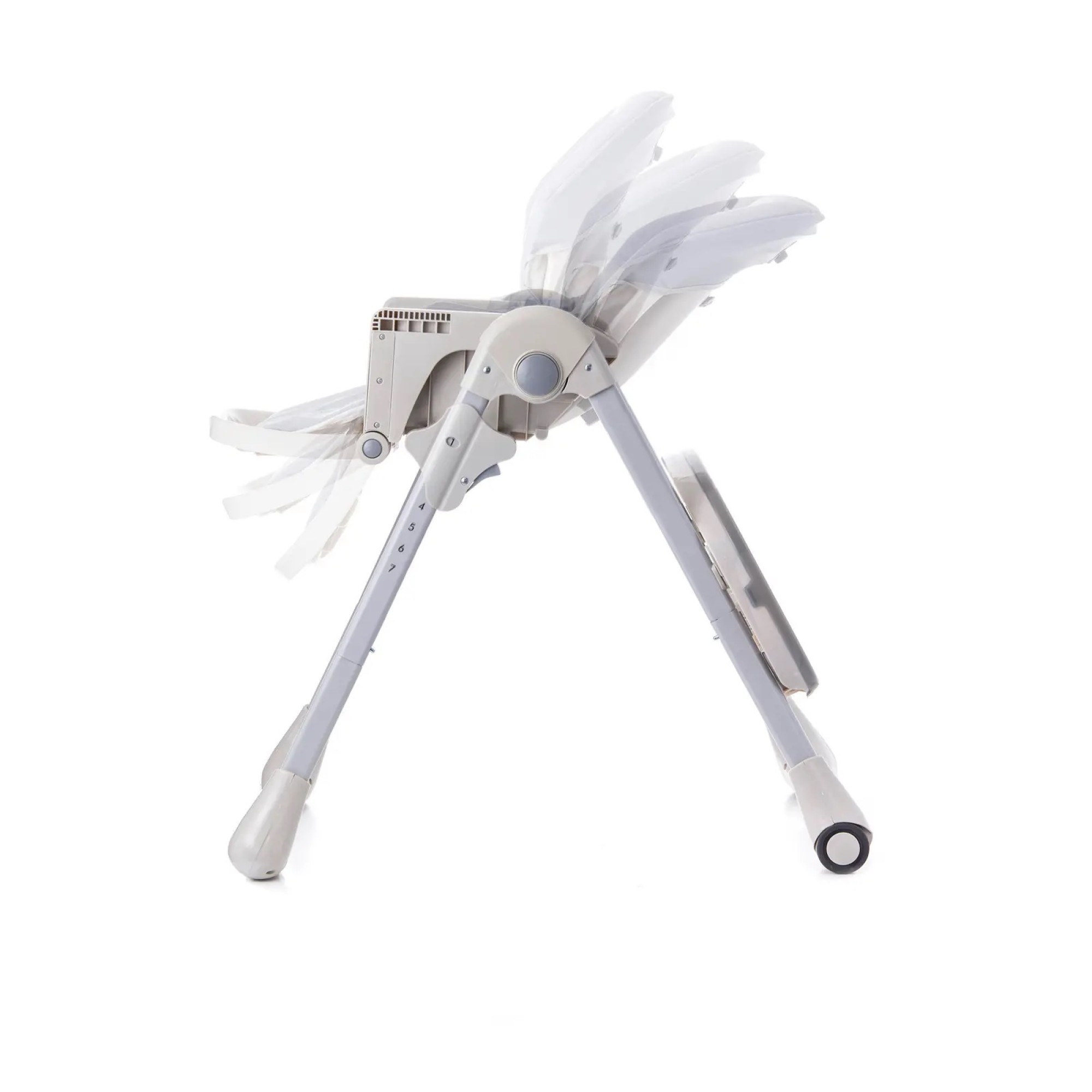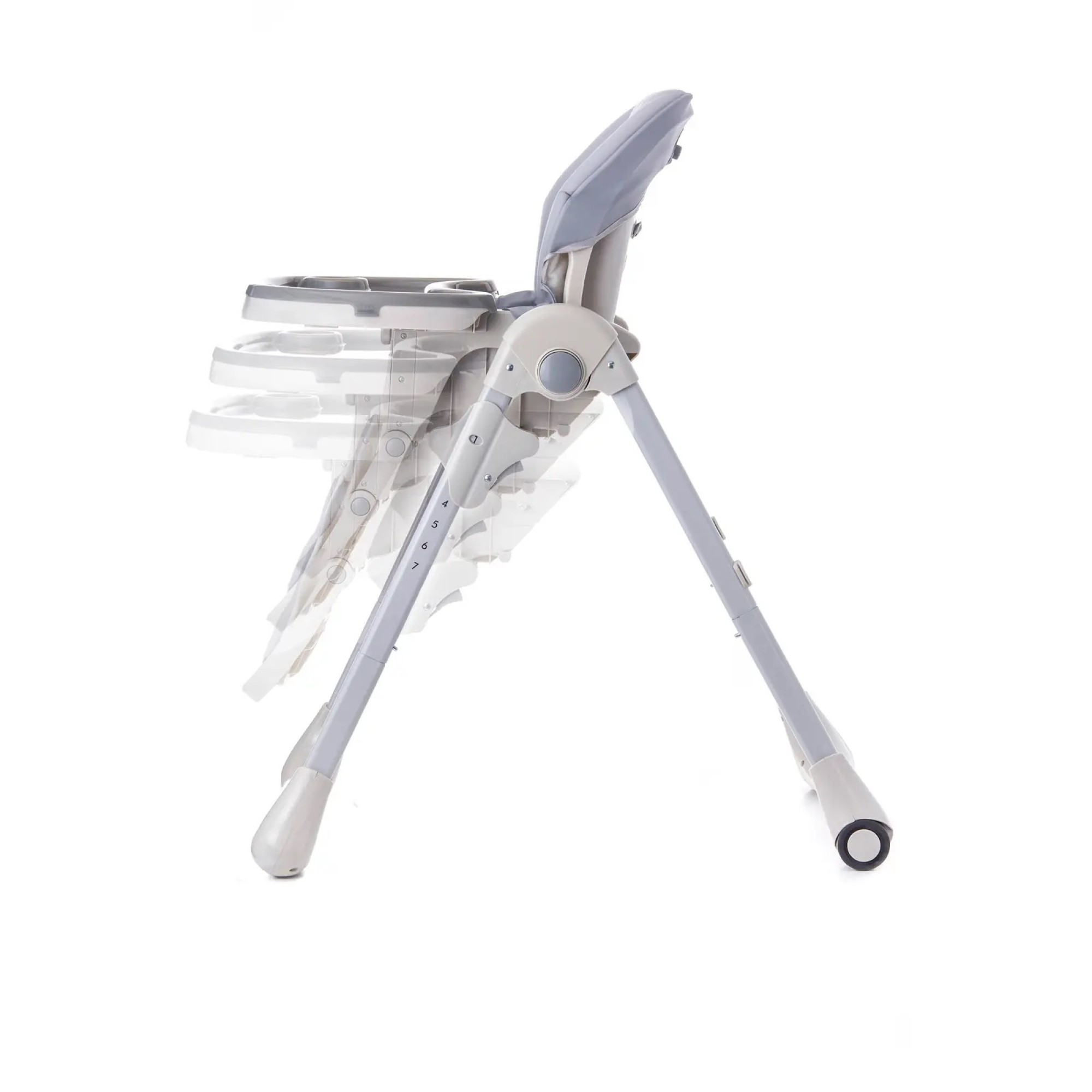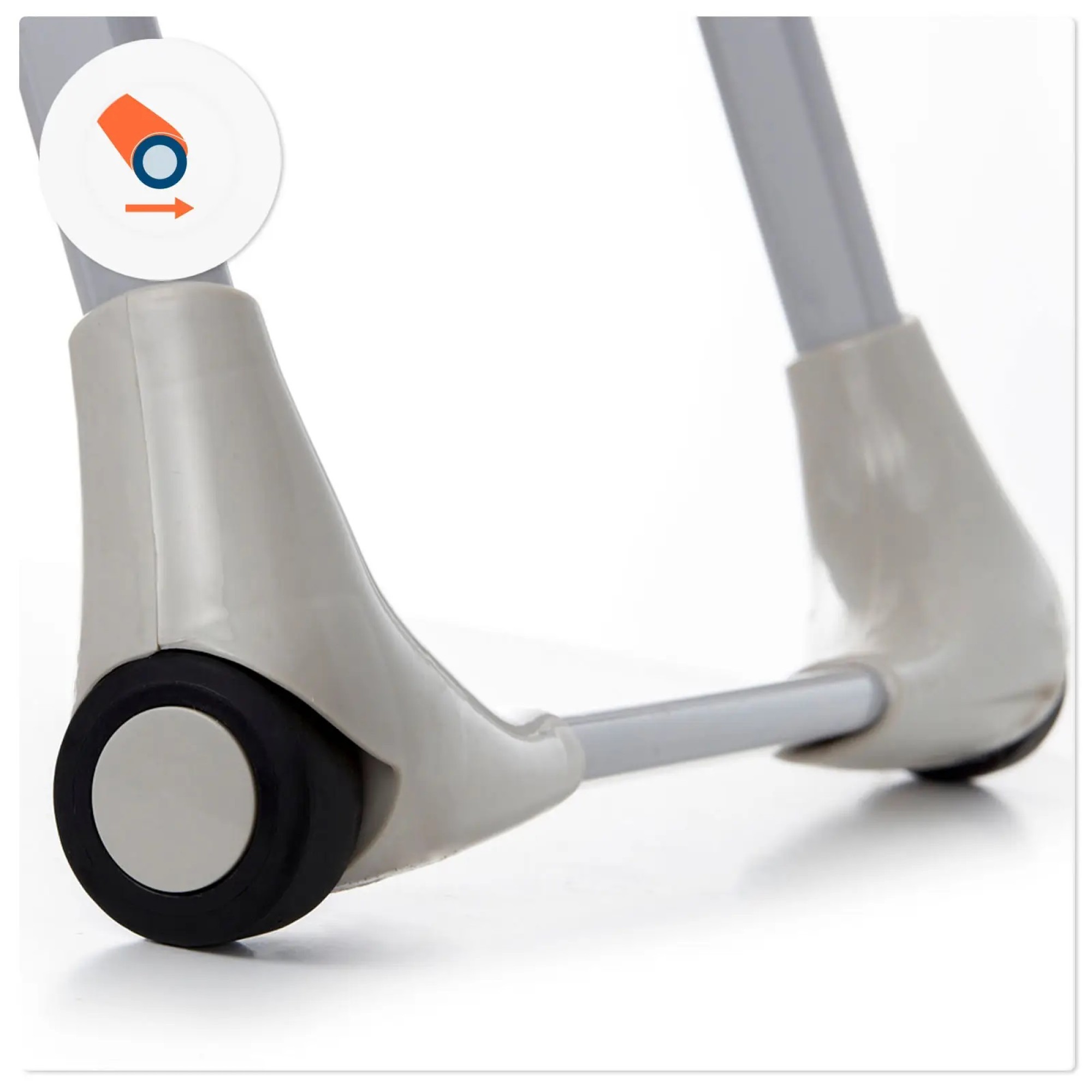 Задні ніжки оснащені коліщатками, які дозволяють переміщати крісло в будь-яке місце, де ви хочете годувати дитину - у вітальні, їдальні або саду. Протиковзкі насадки на передніх ніжках і гальмо на задніх колесах забезпечують стійкість під час їжі.