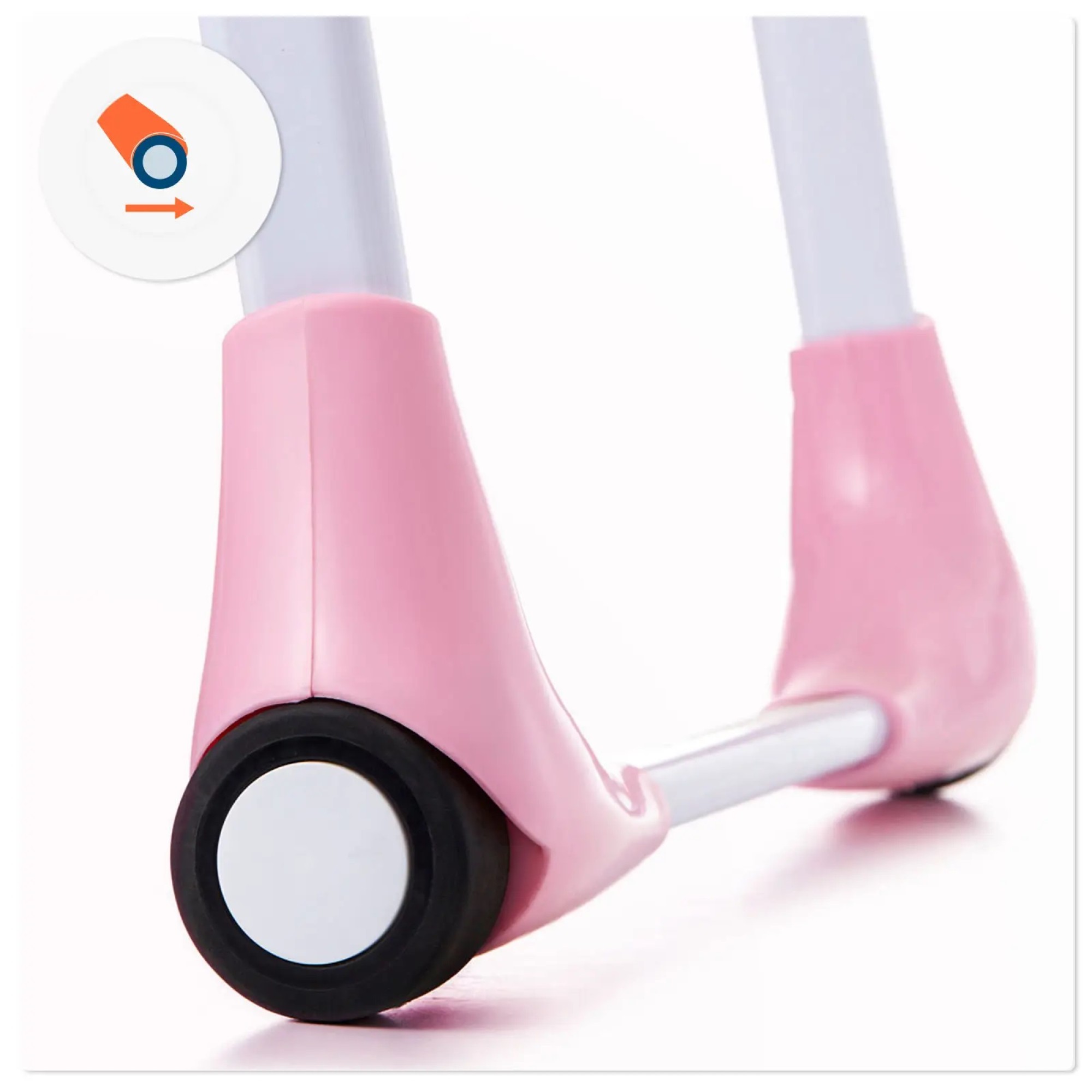 Задні ніжки оснащені коліщатками, які дозволяють переміщати крісло в будь-яке місце, де ви хочете годувати дитину - у вітальні, їдальні або саду. Протиковзкі насадки на передніх ніжках і гальмо на задніх колесах забезпечують стійкість під час їжі.