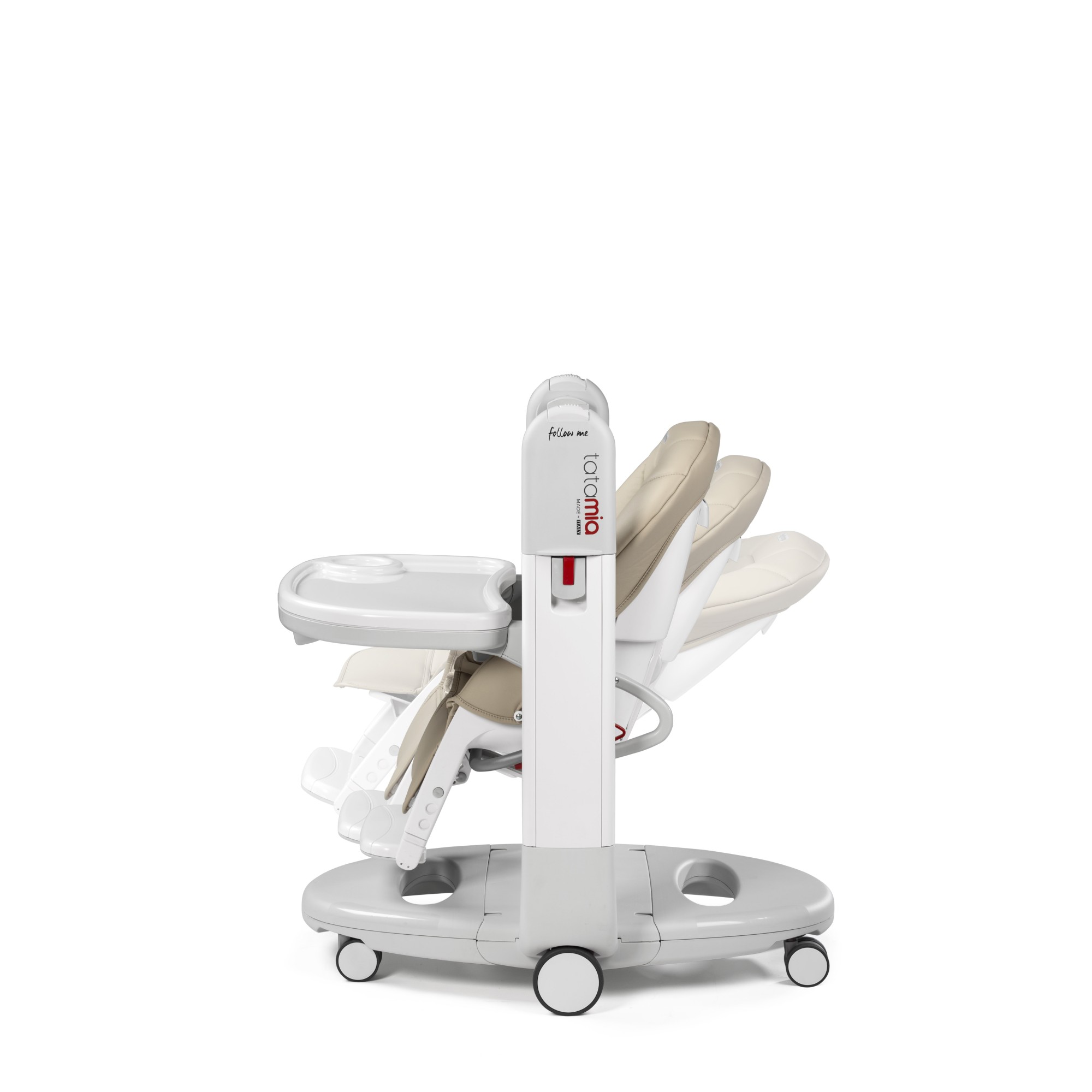 Режим шезлонга З перших днів народження Tatamia Follow Me перетвориться в затишне і безпечне місце для немовляти. Висота сидіння стільчика регулюється в 9 положеннях, а максимальний нахил спинки складає 150 градусів.