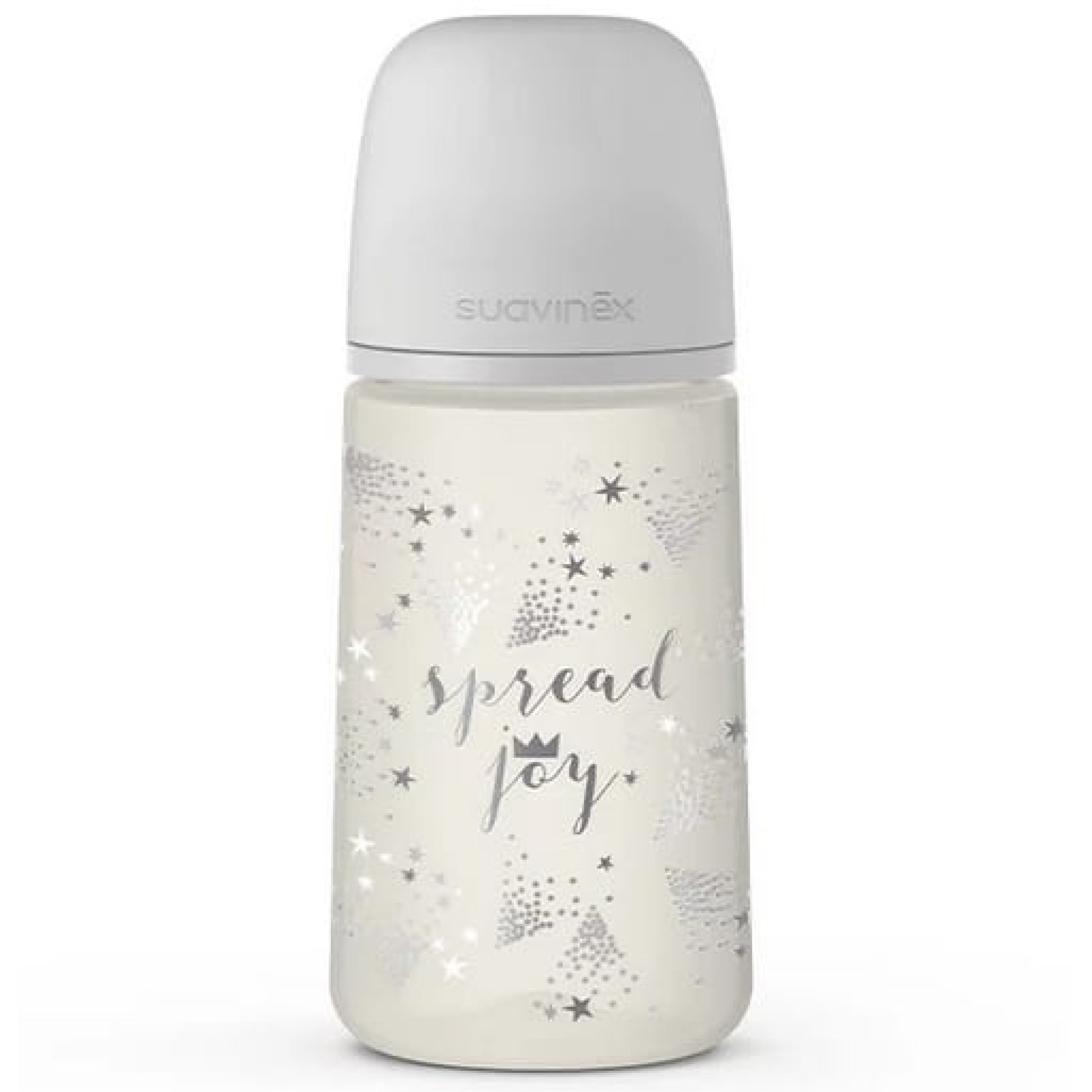 Пляшечка Suavinex з колекції "Срібна корона" з круглою силіконовою соскою ідеально підійде для годування малюка.