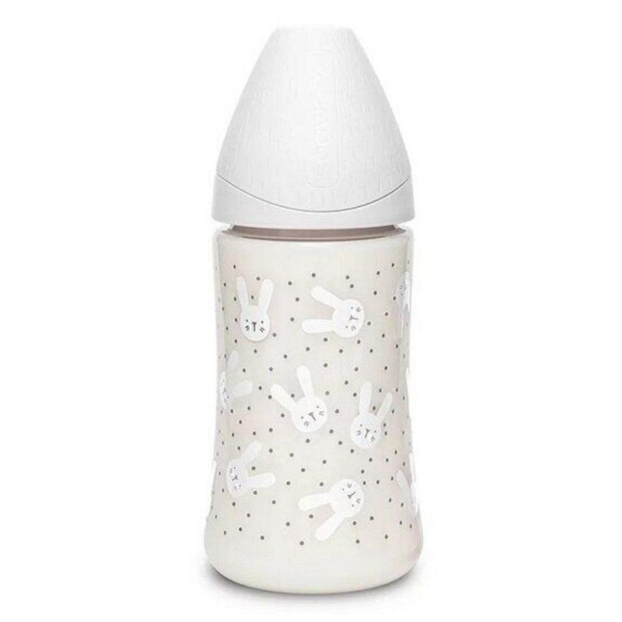 Пляшечка Suavinex, Hygge Затишні історії 270 мл, 3-позиційна соска, сірий зайчик (306681)