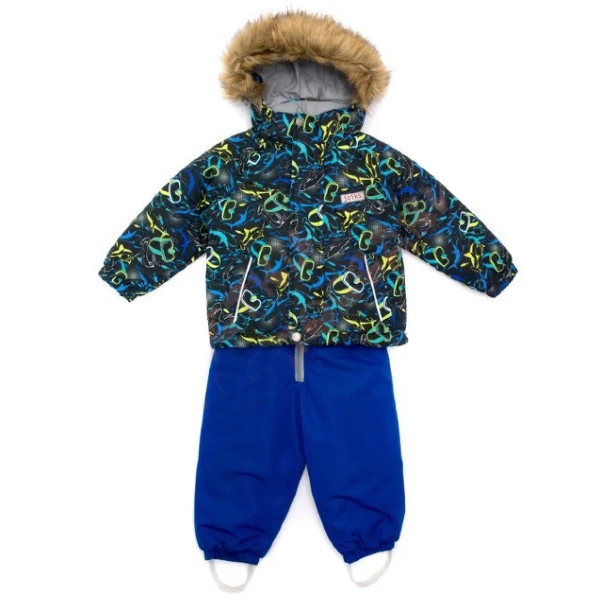 Яскравий і оригінальний зимовий костюм для хлопчика від Joiks прекрасно доповнить гардероб маленького принца. Комплект складається з курточки з принтом і напівкомбінезона на двох бретелях.
