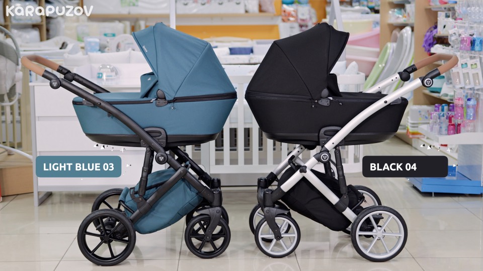 Шасі дитячої коляски алюмінієве. Ручка обтягнута еко шкірою, регулюється по висоті кнопками, всередині під великі пальці, що теж полегшує цей процес.