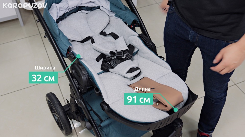 Візуально прогулянковий модуль Junama Space сприймається дуже приємно. Багато в чому завдяки внутрішньої оббивки світло-сірого кольору. Тактильно оббивка дуже м'яка, наближена до бавовняної. Та й взагалі, весь внутрішній простір прогулянкового модуля Junama Space дуже м'яке. Є додаткові бічні борти і навіть підголівник з подушкою по центру. Все це забезпечує максимальний комфорт для дитини під час пересування в колясці.