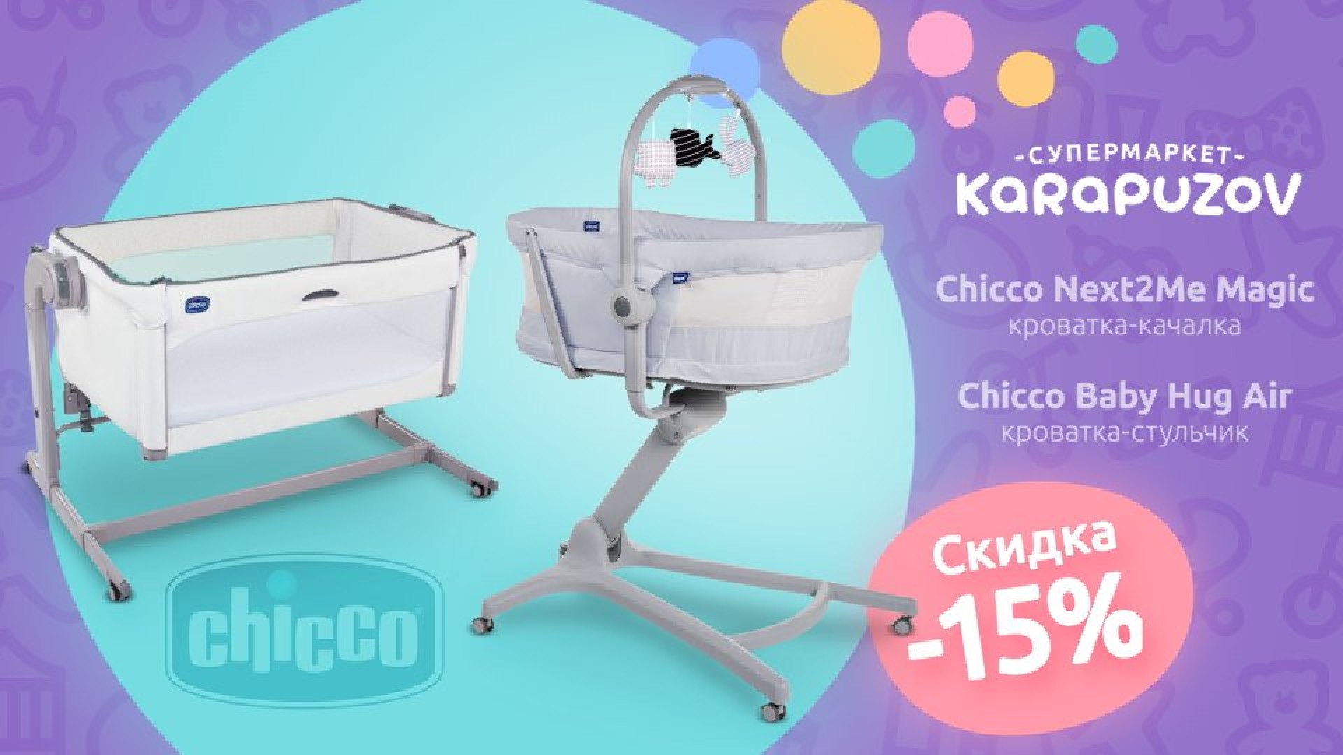 Знижки в дитячому інтернет-магазині Карапузов! Купити приставні ліжечко Chicco Baby Hug AIR 4 в 1 або Next 2 Me Magic можна на 15% дешевше! Поспішайте, акція триватиме лише до середини листопада 2020 року.
