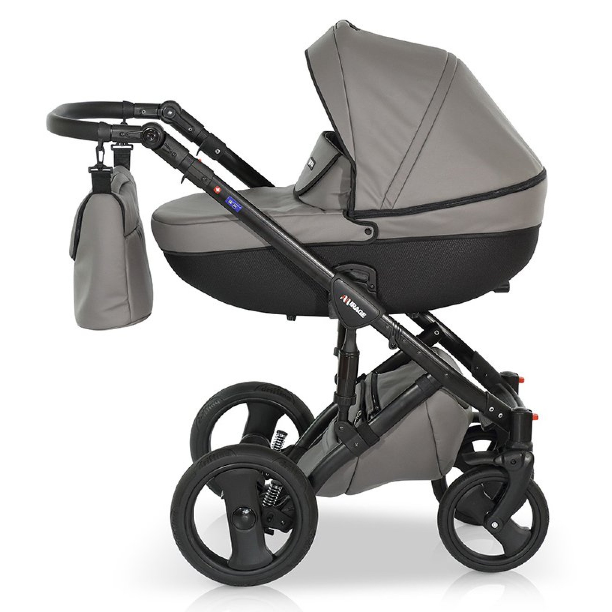 Verdi Mirage Soft (Верді Міраж Софт) – універсальна коляска, на яку можна встановити автокрісло групи 0+ з еко-шкіри з гелієвими колесами та на алюмінієвій рамі.