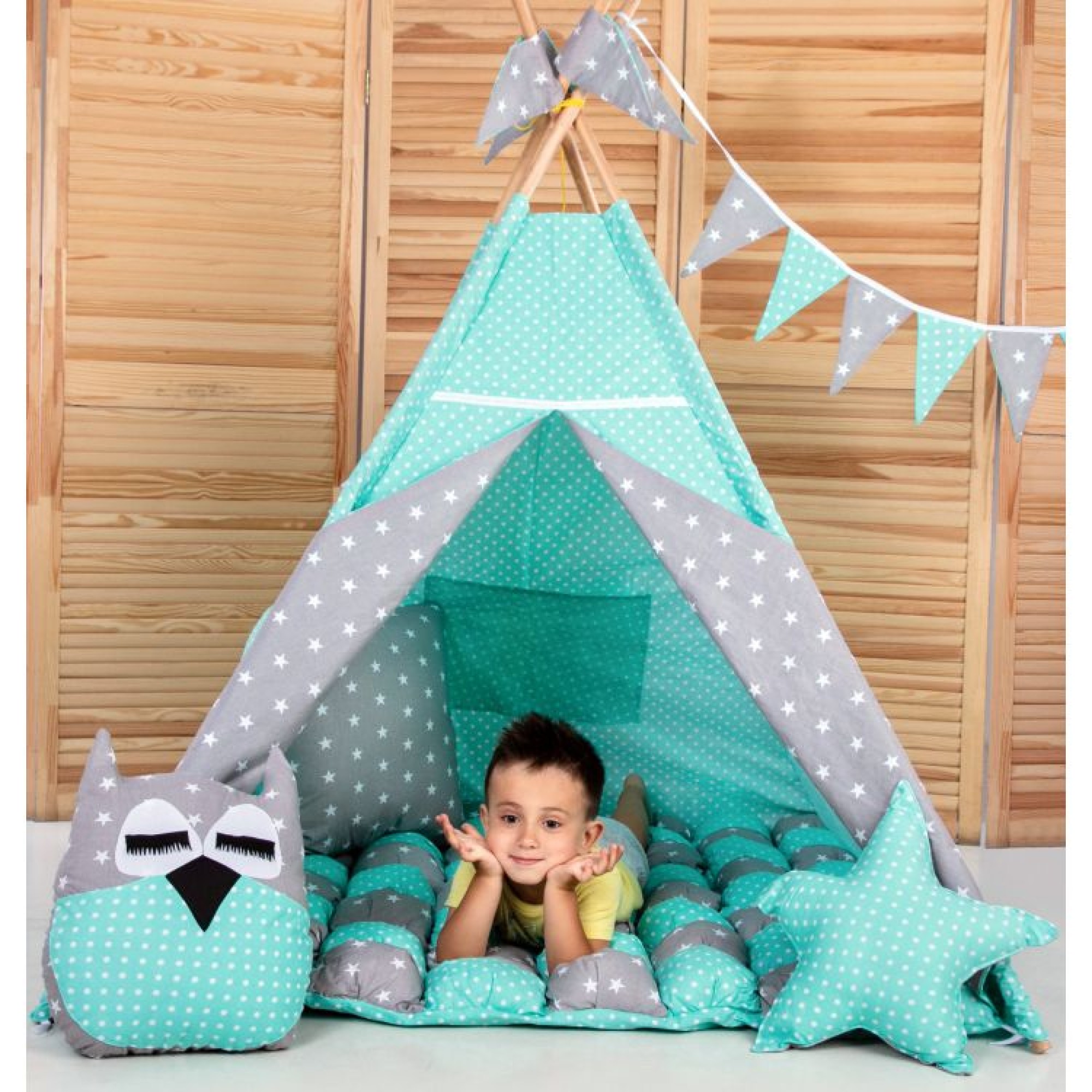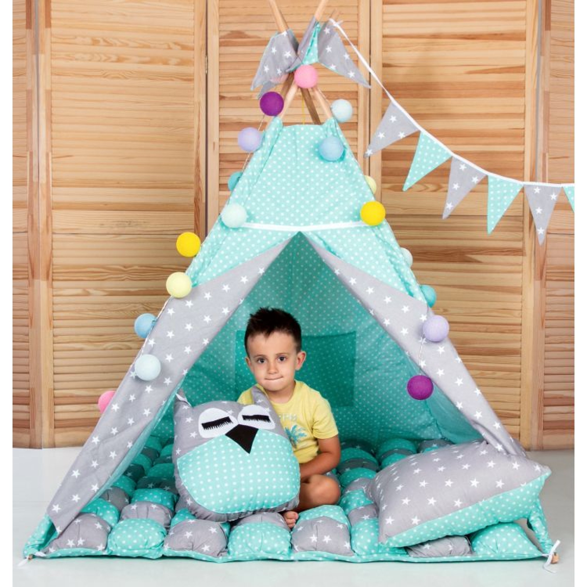 Вігвам Хатка комплект Бонбон Зірки М'ятний із сірим з подушками