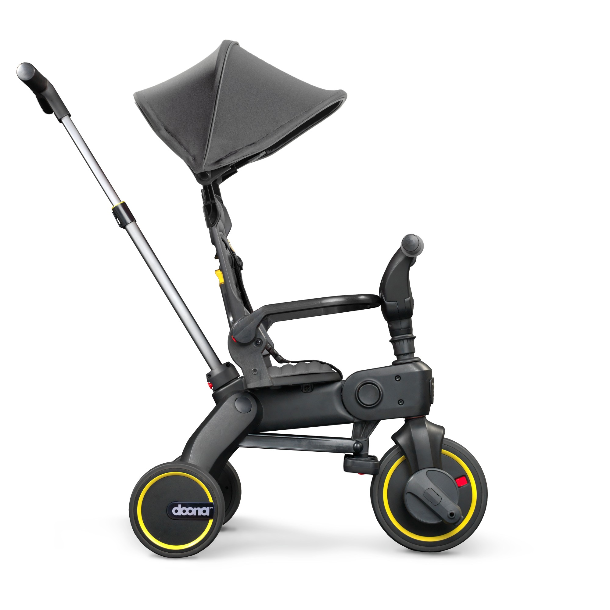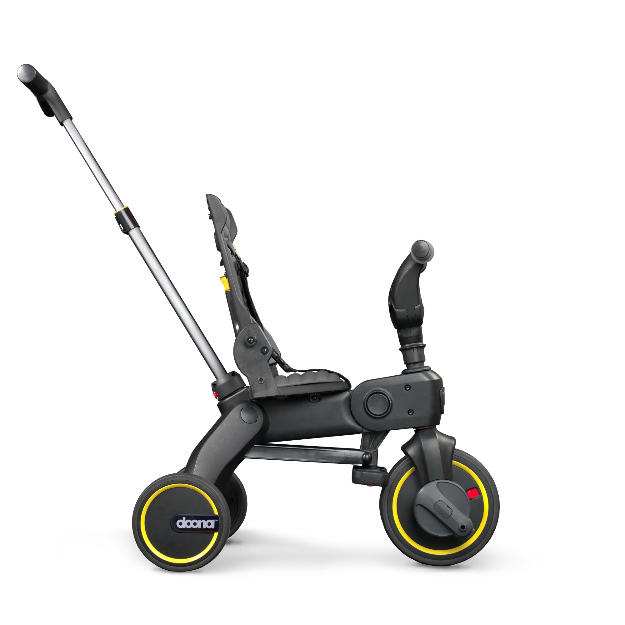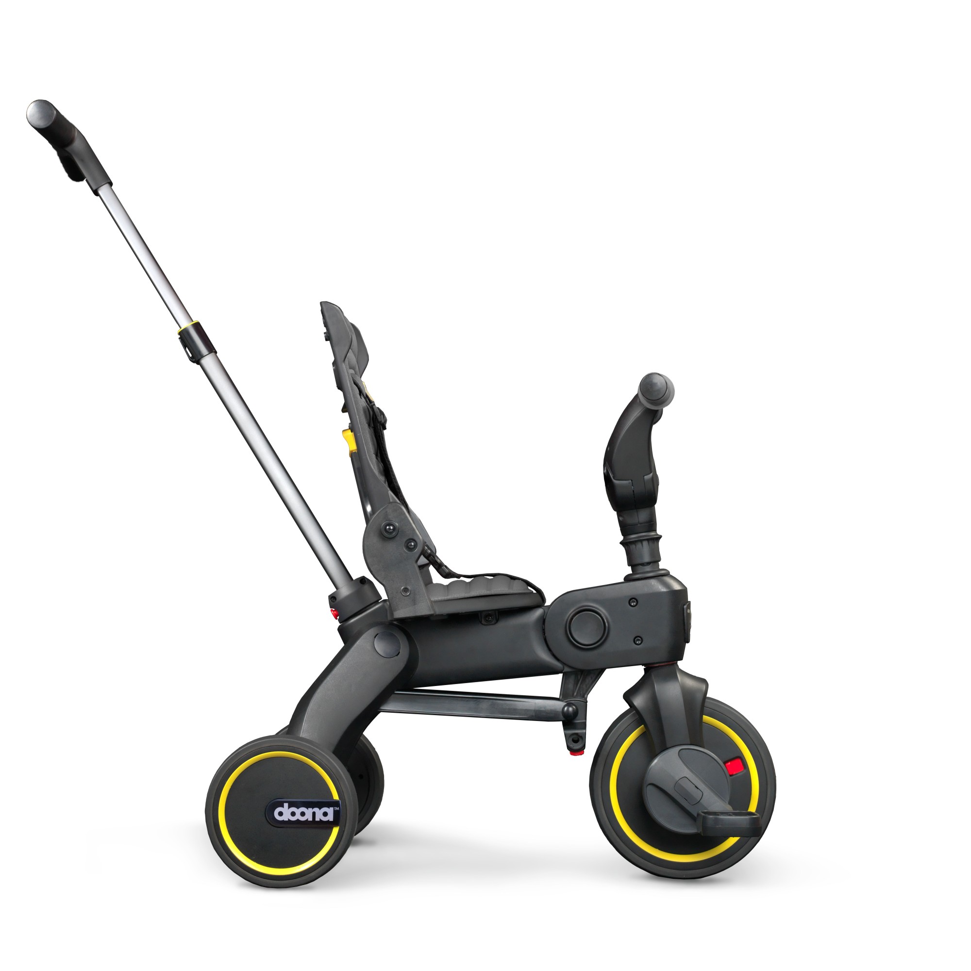 Просто двигайтесь между этапами функционала Doona Liki Trike по мере роста вашего ребенка - от детского велосипеда с родительской ручкой до полноценного 3-колесного детского велосипеда.
