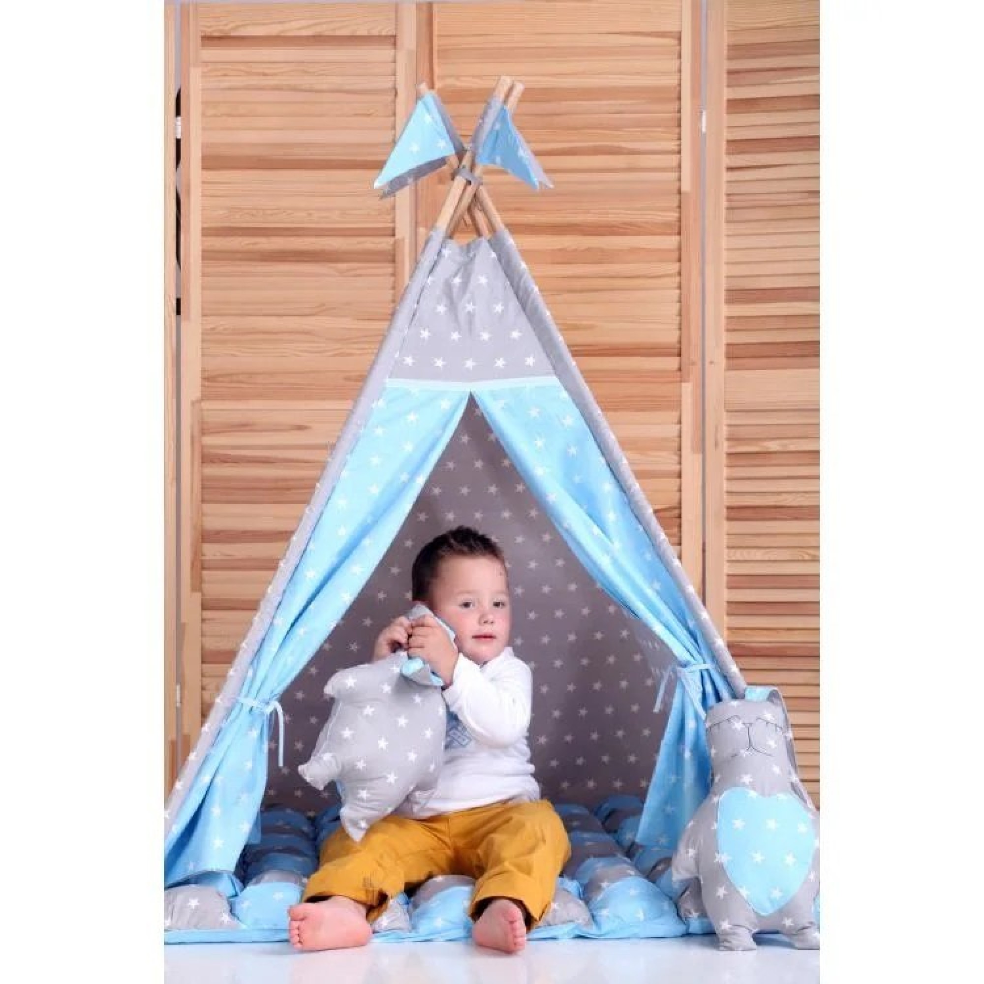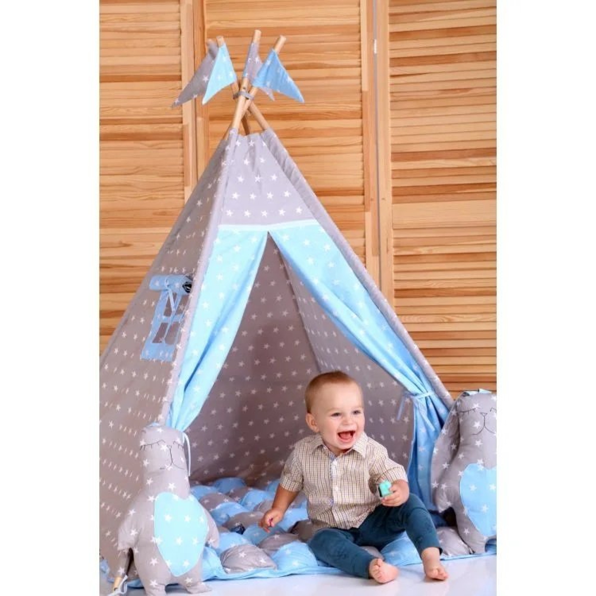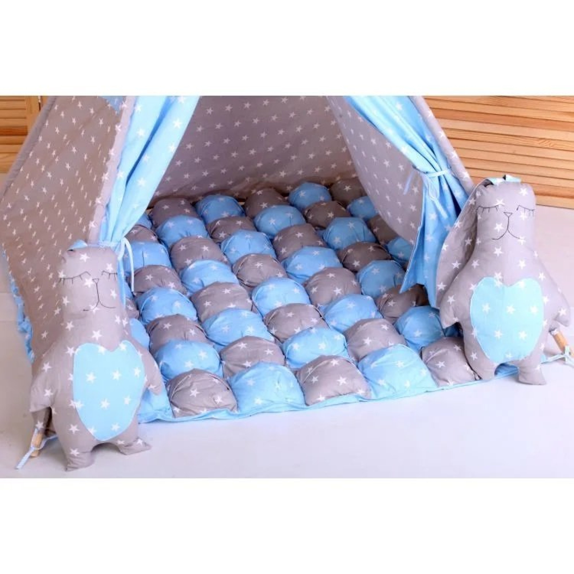 Вигвам Хатка комплект Бонбон Принц Синий с серым с подушками