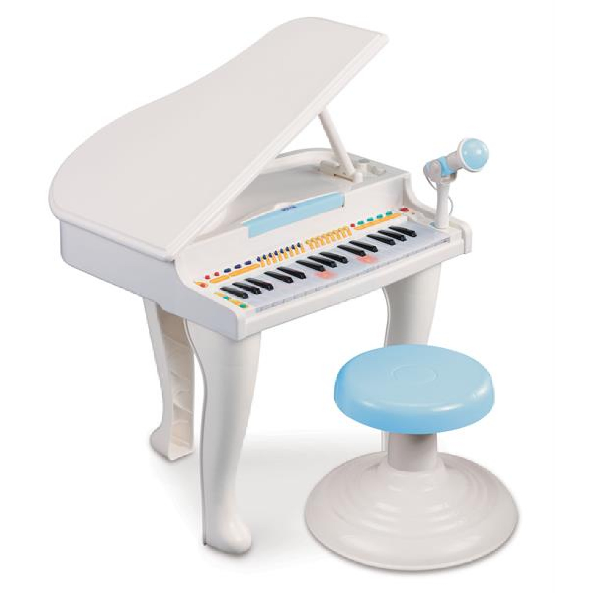 Музыкальная игрушка Weina Рояль (2105) - при сочинении своей музыки юный композитор может использовать дополнительные звуковые эффекты. Ваш ребенок не останется равнодушным к возможности попробовать себя в роле композитора. Если малыш еще не умеет играть на пианино, то лампочки встроенные в клавиши помогут ему в этом. Качественная музыкальная клавиатура с подсветкой. Ваш ребенок может напеть и записать собственную мелодию. 8 ритмов и 8 музыкальных инструментов. 4 мелодии барабанной дроби. Удобный держатель микрофона. Регулятор громкости и темпа. Функция автоматического отключения. Комплектуется стульчиком. Требуются батарейки 4x1,5V AA (не входят в комплект).